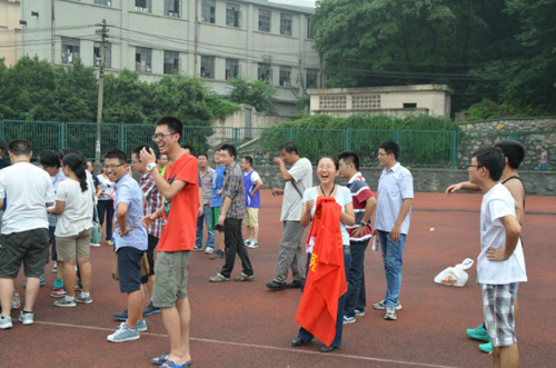 本次比赛旨在培养同学们团结协作、拼搏进取的集体主义精神。比赛以班级为单位,采取男女混合方式进行。由于参赛班级较多,16个队伍采用淘汰制。比赛一开始就呈现出白热化的状态,为了集体的荣誉,同学们都使出了浑身的解数,即使已经觉得精疲力竭了,也绝不轻易放弃。场下的拉拉队员们也毫不懈怠,欢呼声、跺脚声融成一片。此时此刻同学们的心紧紧连在一起,为了共同的目标一起努力着。经过一番激烈的角逐,最终13级博士班夺得了冠军,亚军为11级硕士3班,11级硕士6班、13级硕士1班则分别获得第三、四名。活动结束后,赵志涵老师为获奖班级颁发了奖品并和大家合影留念。