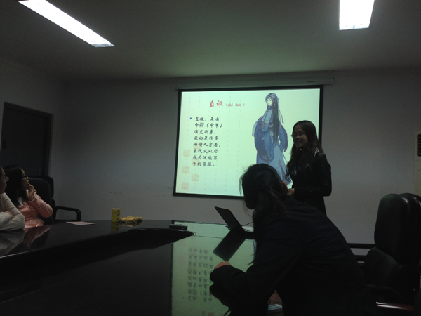 随后来自生活部的蒋梦路同学又带大家领略了汉服的发展过程。她用一些日常能在电视中见到的经典造型向我们阐述了汉服的发展过程,另外她向我们展示了一些手绘插画,简单的汉装大衣附着在不同体态的人物身上顿时具有了一种鲜活的生命力,线条柔美流畅,令人浮想联翩。