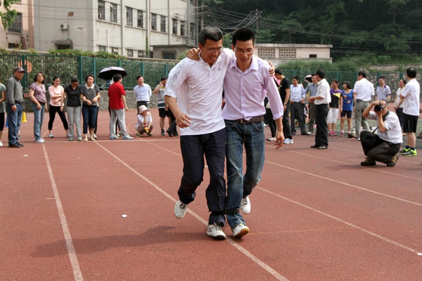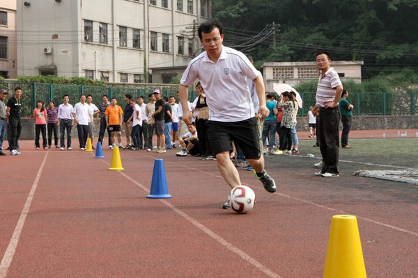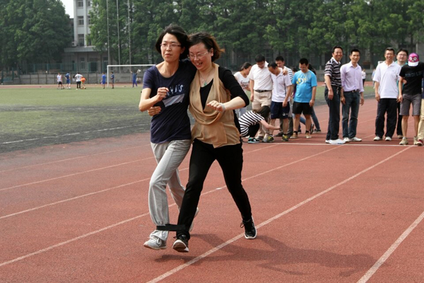 的比赛场地刚还在操场的东南角,没有一丝的遮挡,太阳直直地晒在大家伙的身上,阳光下,学院的老师们劲头十足,经过赛前的短暂练习后,首先进入跳绳比赛,虽然中间有掉链的现象,眼镜碰掉了,这都没有影响我们的比赛,还是取得了不错的成绩。精彩的是抱球跑比赛,我们是老中青结合的男同胞上阵,充分发挥个人的特长,不到一分钟的时间,就结束了比赛,成绩遥遥领先。接下来套呼啦圈接力的比赛,我们派出了清一色的女将出马,瘦小灵活占了优势,又取得了好成绩,最后的踢球接力,虽然两位运动员摔倒,但没有影响成绩,最终我们取得了校趣味运动会的一等奖。其实趣味运动会,最大的意义就是乐趣,2人三足接力,比的是2人的协调和配合,一个项目比赛结束,又一个项目比赛结束,还没上场的老师着急地直嚷嚷,可见大家都乐在其中了。
