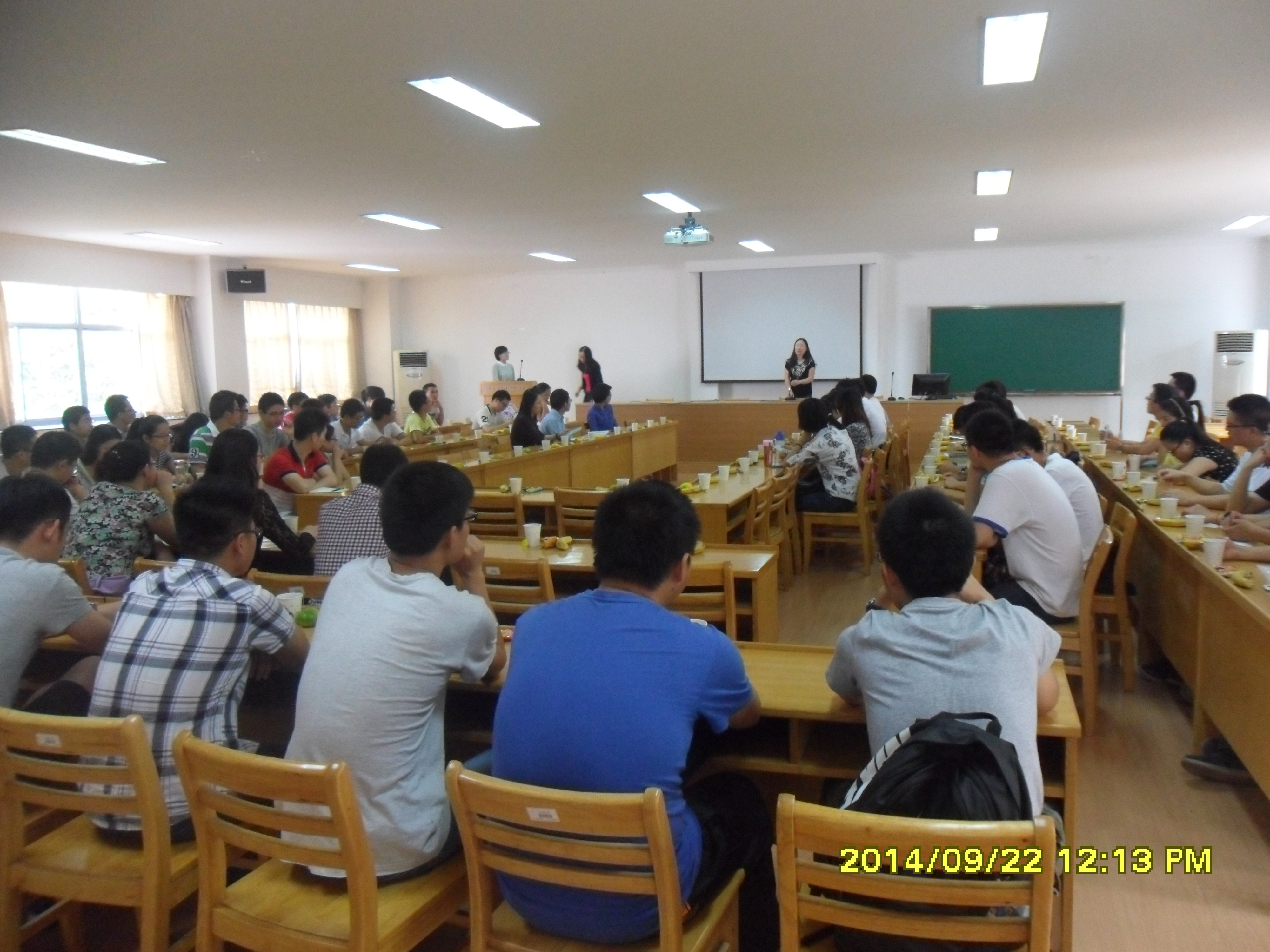 在胡老师的总结发言后,色漫 研究生会主席宋锦焘同学、研究生科协主席钟黎雨同学对2014年新生表示了热烈的欢迎,也对2014新学期的工作进行了说明。研会即将举办的拔河比赛、“新生杯”篮球赛、掼蛋大赛,道德讲堂以及青年志愿者活动等等,形式多样精彩纷呈,敬请同学们的期待。科协即将举办的本硕博活动、节水活动、科普水利知识竞赛、达峰论坛系列讲座等等,更是以服务同学为宗旨,让更多同学参与到学术交流中。