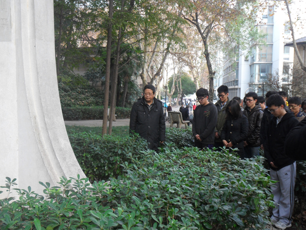 大屠杀纪念碑旁举行。活动邀请了国家第二历史档案馆专家讲述抗日战争历史,出席本次活动的还有水电院辅导员赵志涵老师,现代快报的记者们以及水电院各年级党支部的成员。