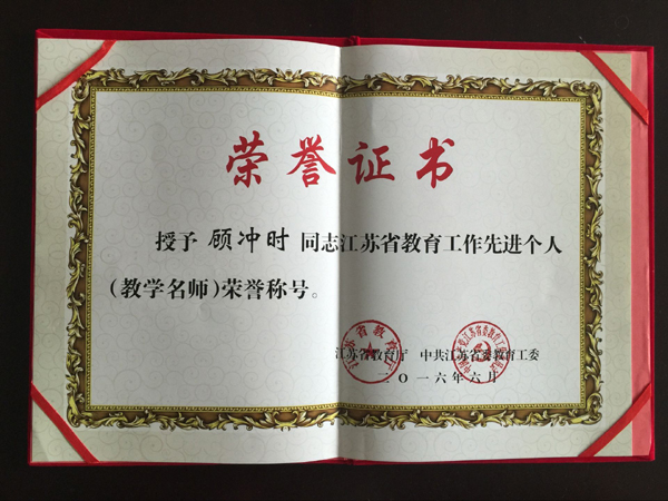顾冲时教授被授予“江苏省教育工作先进个人(教学名师)”荣誉称号,水利水电工程系被授予“江苏省教育工作先进集体”荣誉称号。