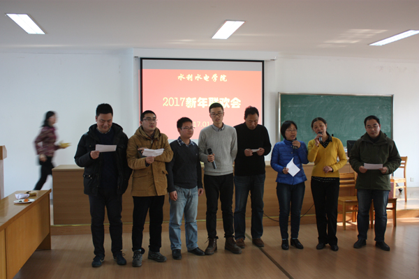 1月12日下午水电馆401会议室其乐融融,学院的新年联欢会在这里举行,今年还来了许多小朋友,更增添了热闹的气氛。 联欢会在陈书记的美好致词后开始,各系所自编自导的节目很有看点,水工结构所的诗朗诵,顾院长领头,所长、教授及年轻教师起上阵,把在讲台上讲课的激情融入到诗中;泥沙实验室教师和孩子们的跳操舞,给我们带来了欢快和活力;水利水电、水力学和农水的节目,看到了色漫 教师的多才多艺;两办的手语舞,让我们体会到家的和谐与温暖。(陶艳芝)
