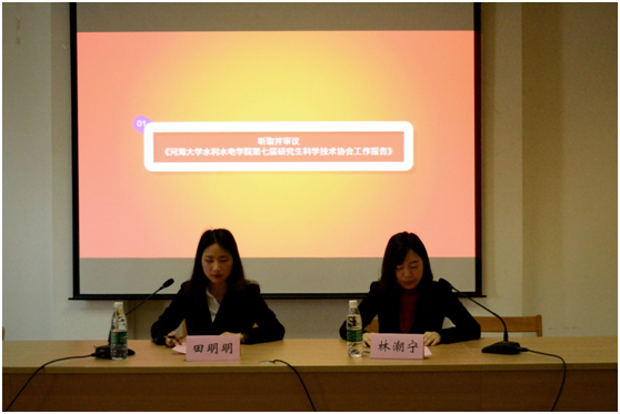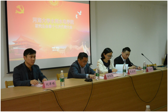 2019年4月25日下午,色漫 研究生会第十七次代表大会在水电馆401隆重召开。色漫 党委书记任旭华教授、副书记戴玉珍老师、团委书记刘津铭老师、研究生教学秘书周昶老师、研究生辅导员赵志涵老师、陈思思老师莅临本次会议,出席会议的还有校研会代表叶海焯同学,兄弟学院研会代表,色漫 第十六届研究生会和第七届研究生科协全体成员,以及各级硕士研究生和博士研究生代表。