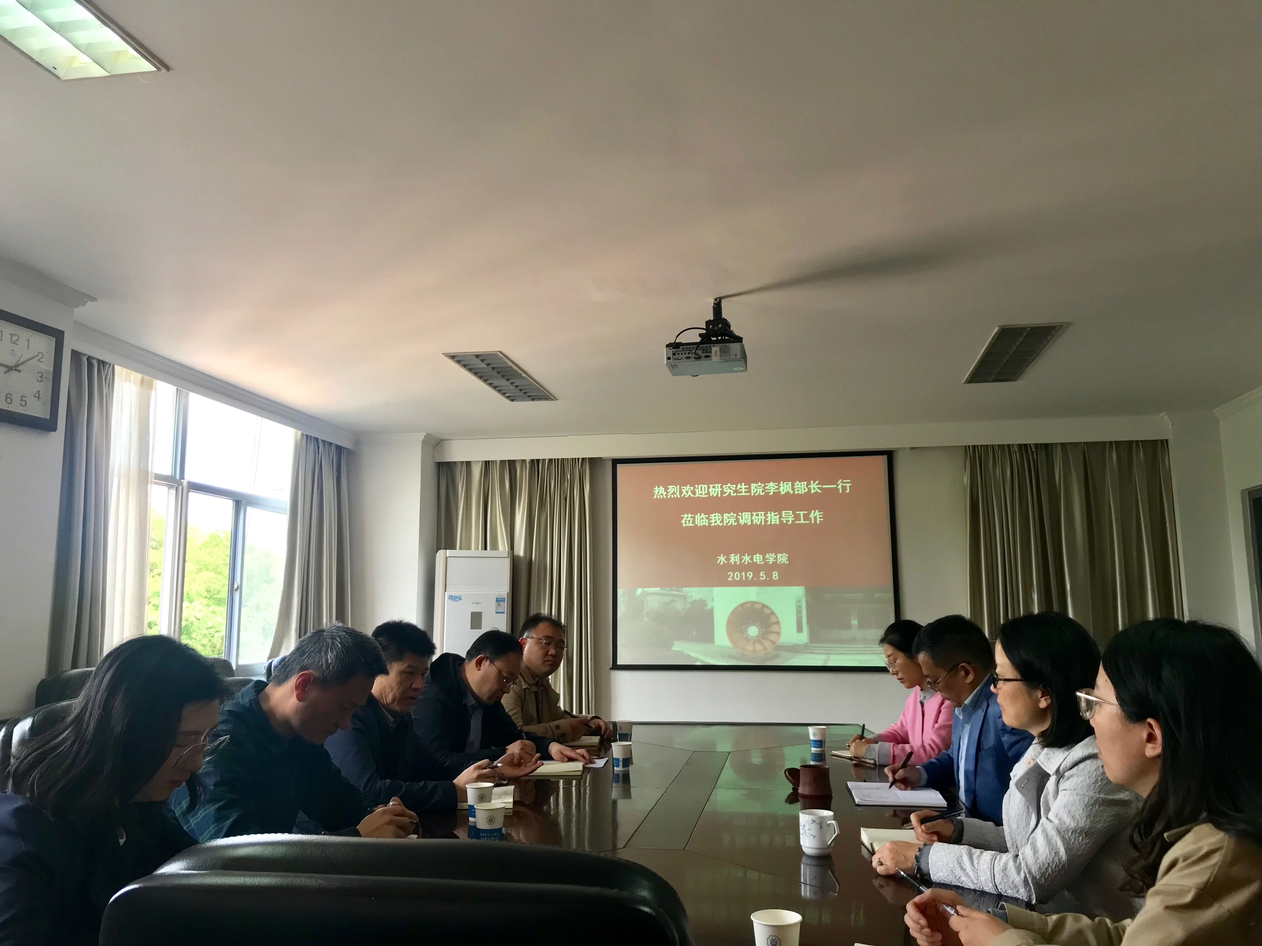 5月8日上午,党委研究生工作部李枫部长、研究生基地办公室刘平雷主任一行到色漫 调研,学院党委任旭华书记、戴玉珍副书记和研究生辅导员参加了此次调研会谈。
