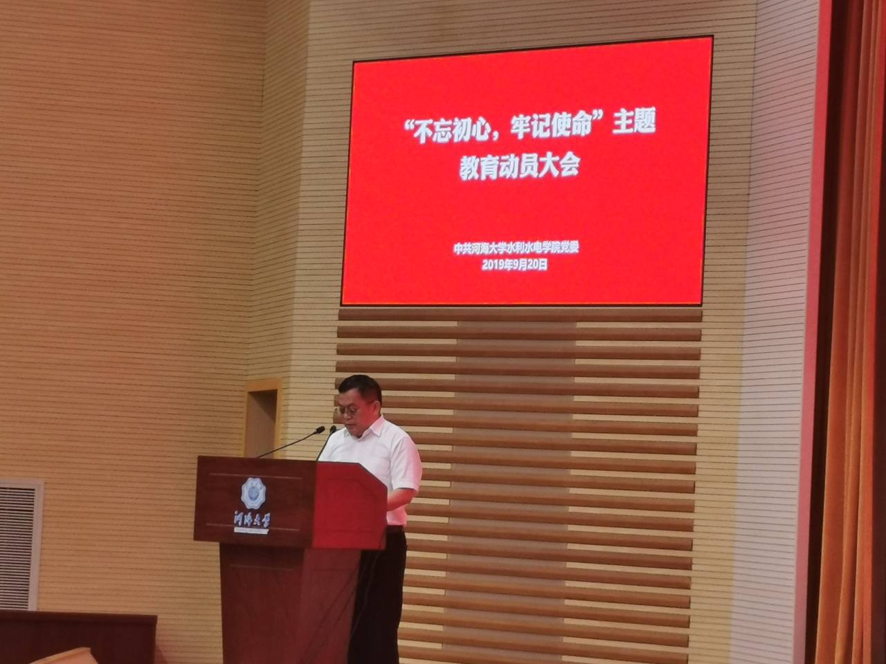 开展“不忘初心、牢记使命”主题教育是党中央的重大决策部署,全院党员、干部一定要认真学习贯彻,切实提高对开展主题教育重要性、迫切性的认识,着力加强组织领导、精准压实工作责任、持续改进工作作风,高质量地推进主题教育各项任务的落实,高水平统筹好主题教育与学校当前改革发展建设各项工作,确保主题教育取得实实在在的成效,以更加优异的成绩迎接新中国成立70周年。(胡瑞媛)