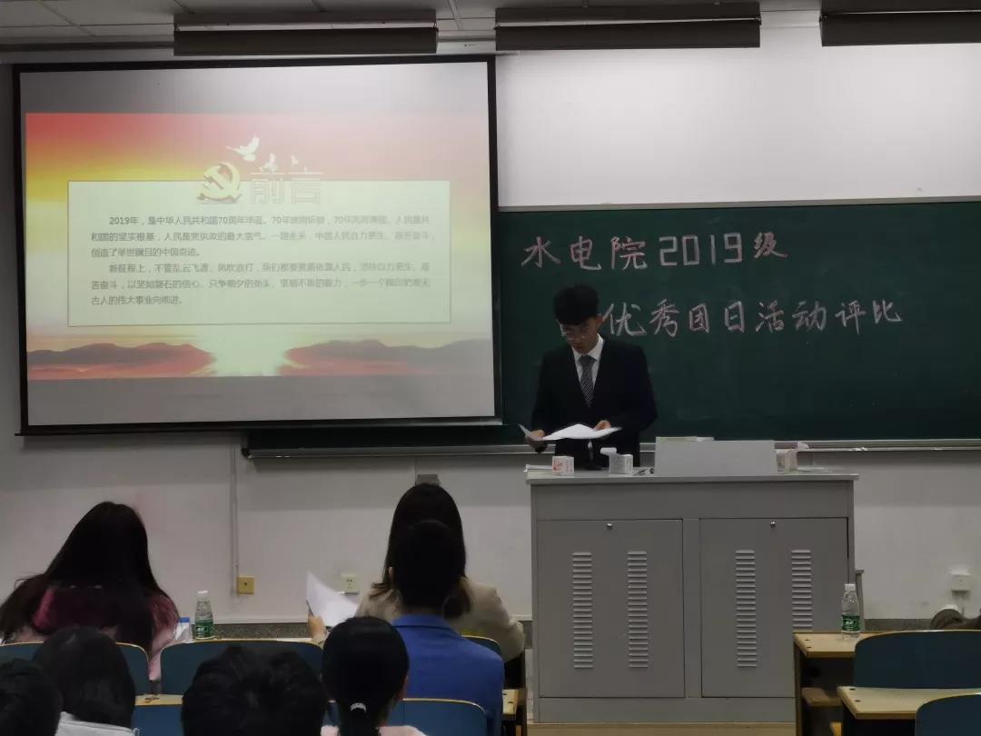 2019级色漫 “我的大学100天”主题团日活动渐入尾声,在过去繁忙但却充实的一百天中每个水工班级都在为创建丰富多彩的且充满意义团日活动而努力奋斗。为了推选出优秀班级团日活动代表色漫 参加校级优秀团日活动评选,在经过前期充分准备后,水电院团委于2019年12月3日在致用121教室组织一场最佳团日活动评选会。