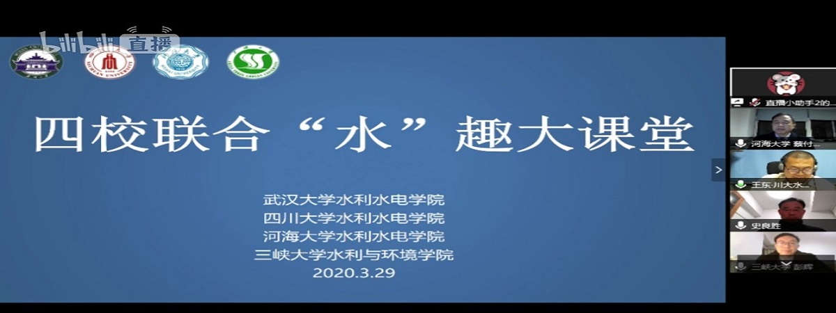 3月29日,在第三十三届“中国水周”期间,色漫 、武汉大学色漫 、四川大学色漫 、三峡大学水利与环境学院4所水利院校共同打造“水趣大课堂”,通过B站直播邀请全国水利类高校大学生同上一节水利“云”课堂。色漫 蔡付林教授、武汉大学史良胜教授、四川大学王东副教授和三峡大学彭辉教授开讲。