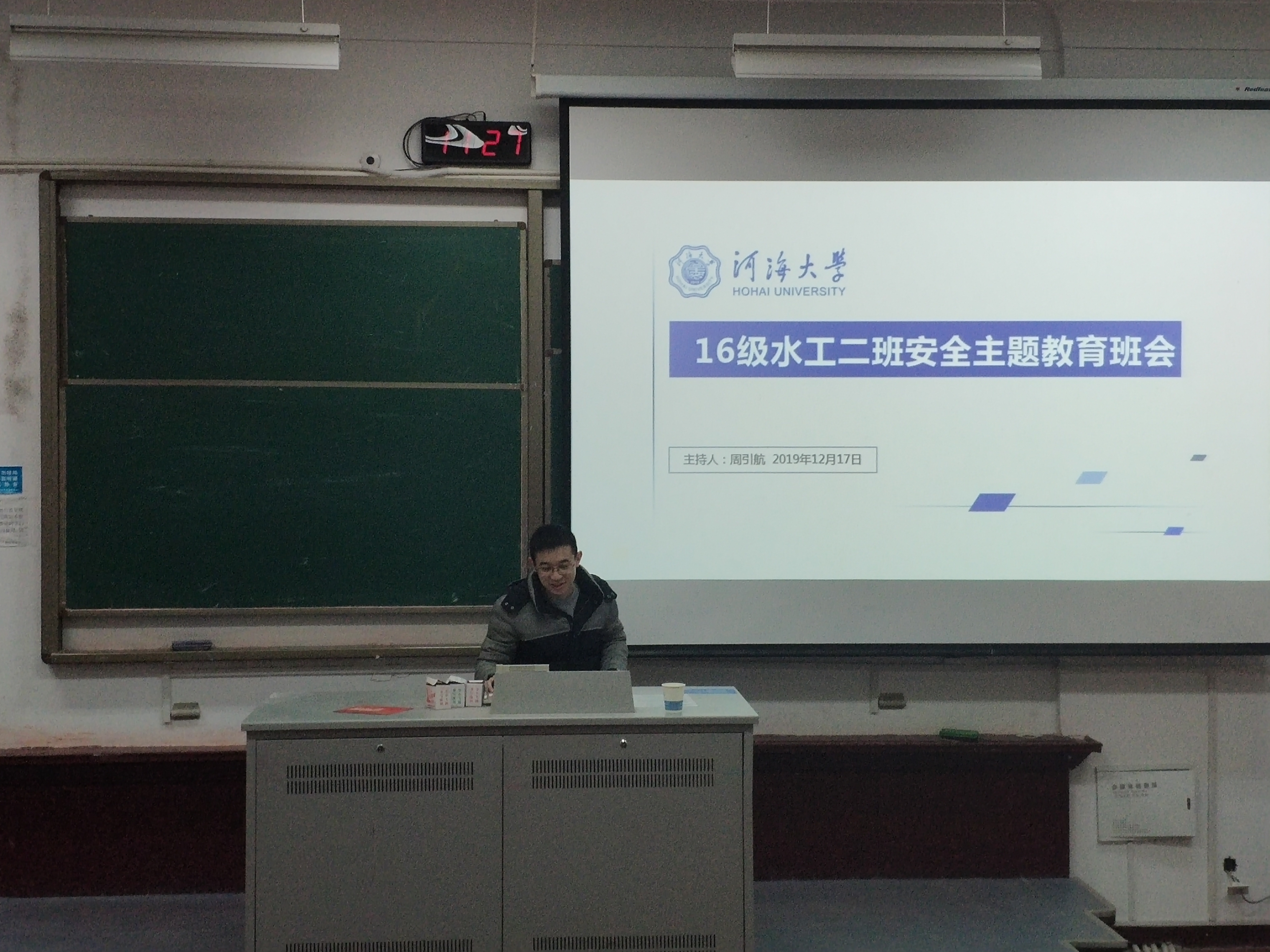 12月17日,2016级水工二班在工程馆101举行了安全教育主题班会。班会以结合学校安全教育为主题,对班级全体同学进行安全教育,学习安全知识,使同学们认识到安全的重要性。