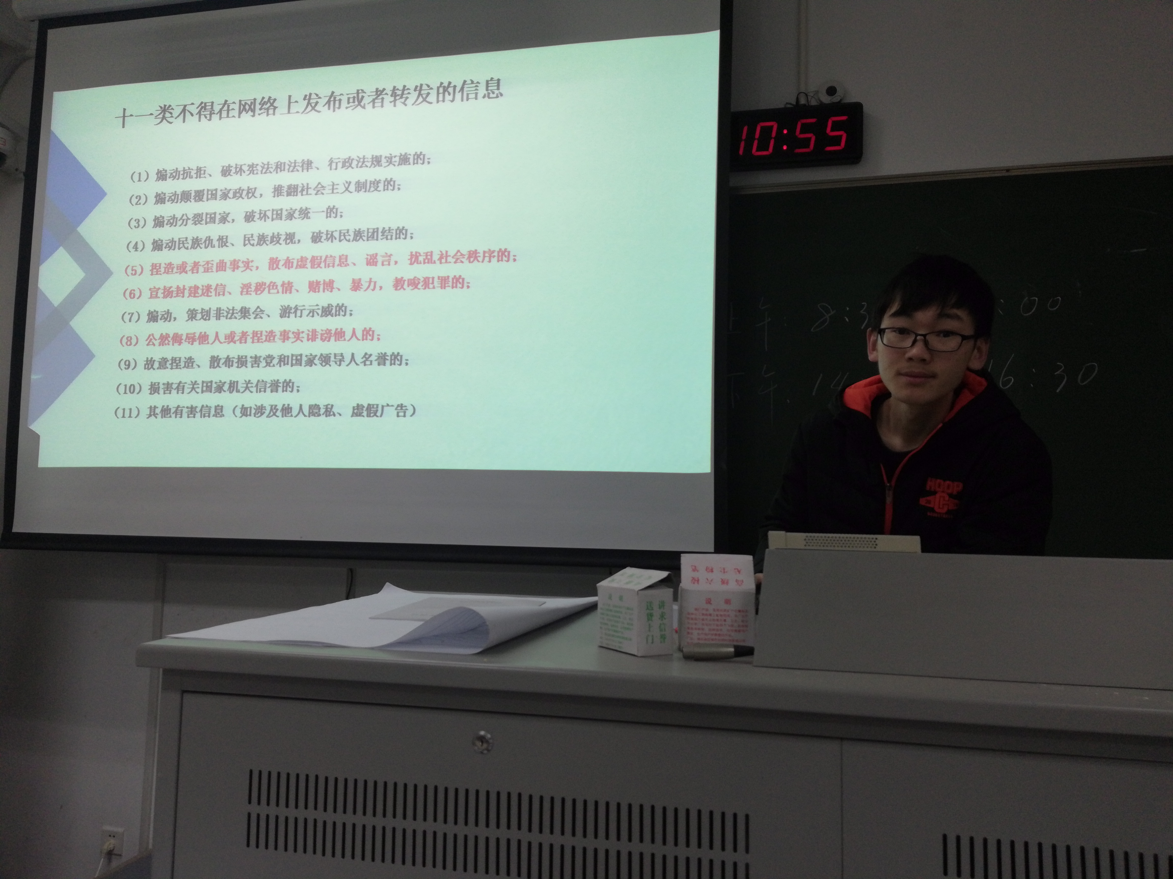 班会在六点半准时进行,班长韩建军同学就日益复杂的网络犯罪,例举了四个典型方面问题与同学们交流,包括:网络诈骗日益泛滥、网络淫秽色情、网络赌博屡打不绝、销售违禁品的网络黑市问题和网络黑客犯罪突出。其中着重强调了与我们息息相关的诈骗问题,具体包括利用“分类信息门户网站”发布虚假信息进行诈骗、冒充QQ诈骗和机票诈骗等