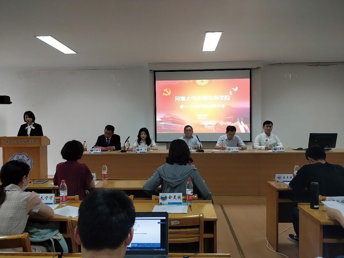 任旭华书记在讲话中代表学院对大会的召开表示热烈的祝贺,向学院广大研究生致以诚挚的问候。他充分肯定了学院研究生会在2019年度做出的重要贡献和取得的突出成绩,并对学院研究生会的工作提出了期待和要求。他希望水电学院全体研究生继续以高标准严格要求自己,在校期间努力学习,毕业后能够不畏艰辛,积极投身国家水利事业的发展,将个人理想与国家需求紧密结合,实现自己的人生价值。