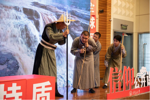 同学们以大禹三过家门而不入为蓝本,用话剧形式演绎大禹治水的艰辛过程,彰显民为邦本,公而忘私,创新求知的大禹精神。四位同学为我们带来江河安澜——水利人在路上诗朗诵表演。他们真挚的誓言中蕴含的是对河海的热爱,对色漫 的热爱以及自己奉献给水利事业的坚定信念与决心。