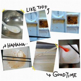 与此同时,同学们也以光盘拍照打卡的形式,记录和分享自己所采取的实际行动。同学之间互相监督,在校园食堂内形成良好风尚。