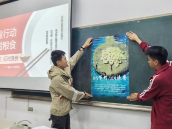 晚上,团支书李攀宇简单叙述了目前的粮食浪费现状,引发了大家的深思。团支书在班会上引出了“如何更好地节约”的话题,同学们激烈地参与讨论。