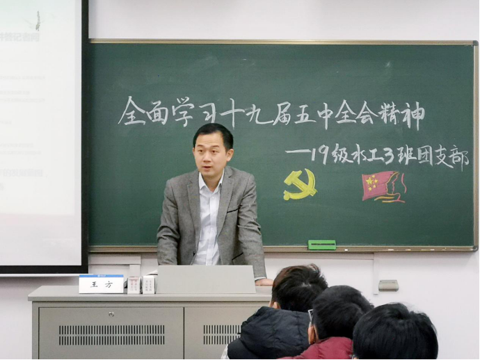 12月7日,色漫 2019级水工三班开展“深入学习党的十九届五中全会精神”专题学习会,党委副书记王方、2019级辅导员帅雨婷和水工三班全体同学参与会议,团支书闵恒主持会议。