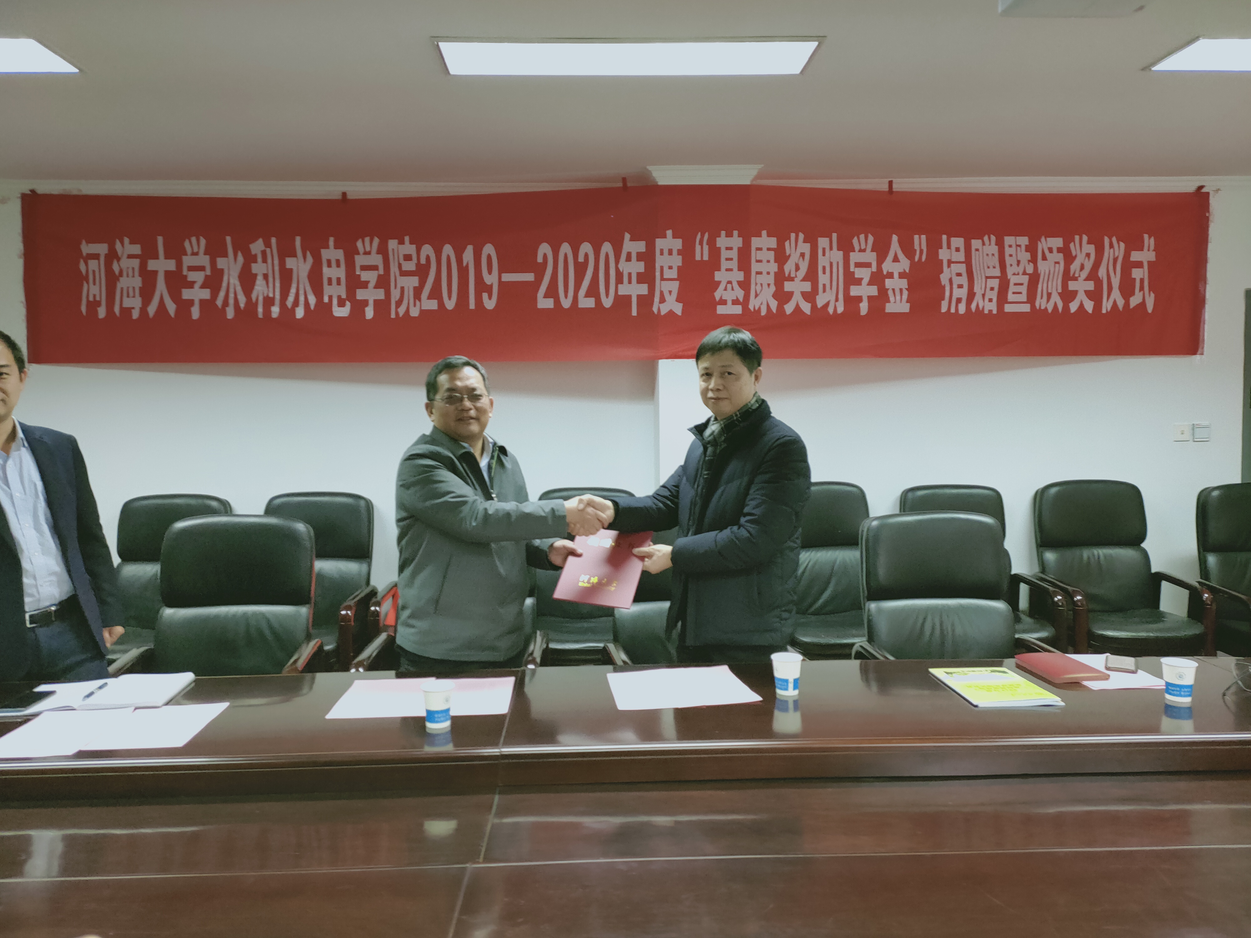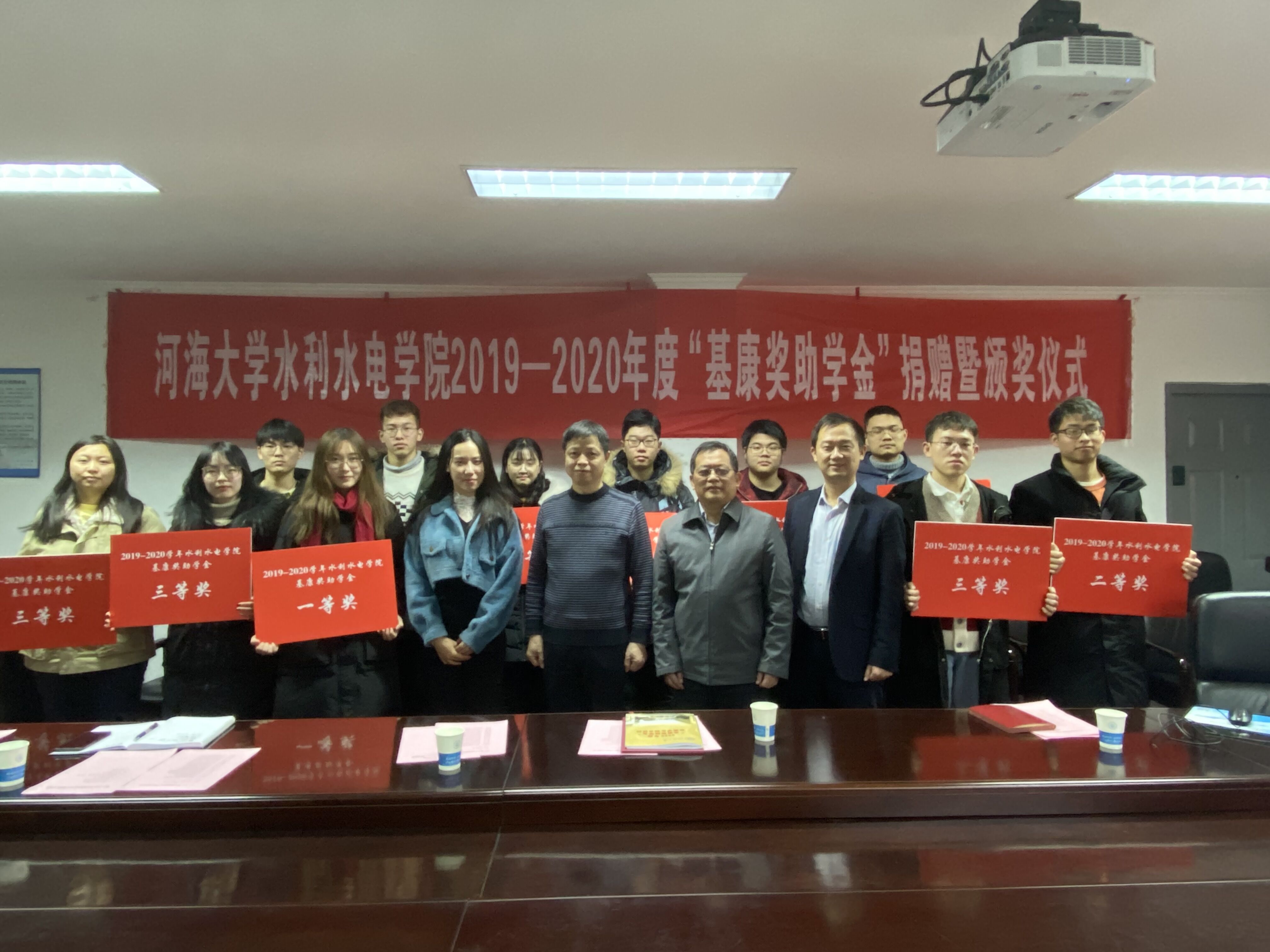 沈董事长对学院培养的学生素质给予充分的肯定,对获奖同学表示祝贺,他向同学们介绍了“基康奖助学金”的成立初衷,教育同学们应具有强烈的社会责任感。他以学长的身份分享了自己在河海读书时的经历,鼓励同学们不断进步。