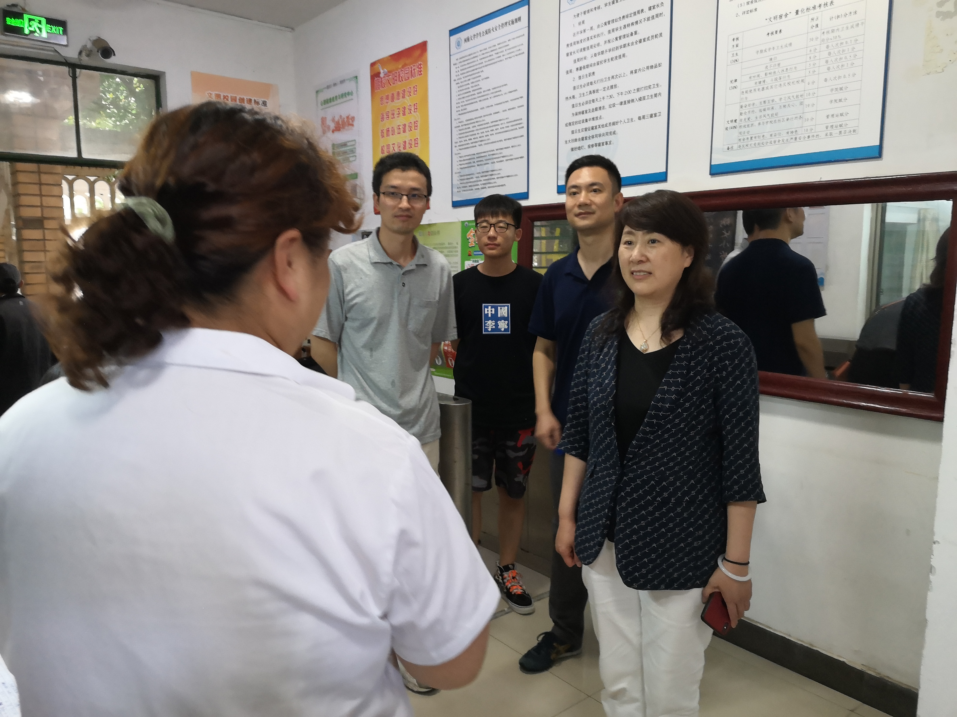 王媛院长一行先后来到新疆馆、女生二舍,了解学生搬迁情况,查看宿舍基础设施和环境卫生情况。王院长代表学院向同学们表示热烈欢迎,并高度评价大家自力更生、互相帮助、朝气蓬勃的精神面貌。