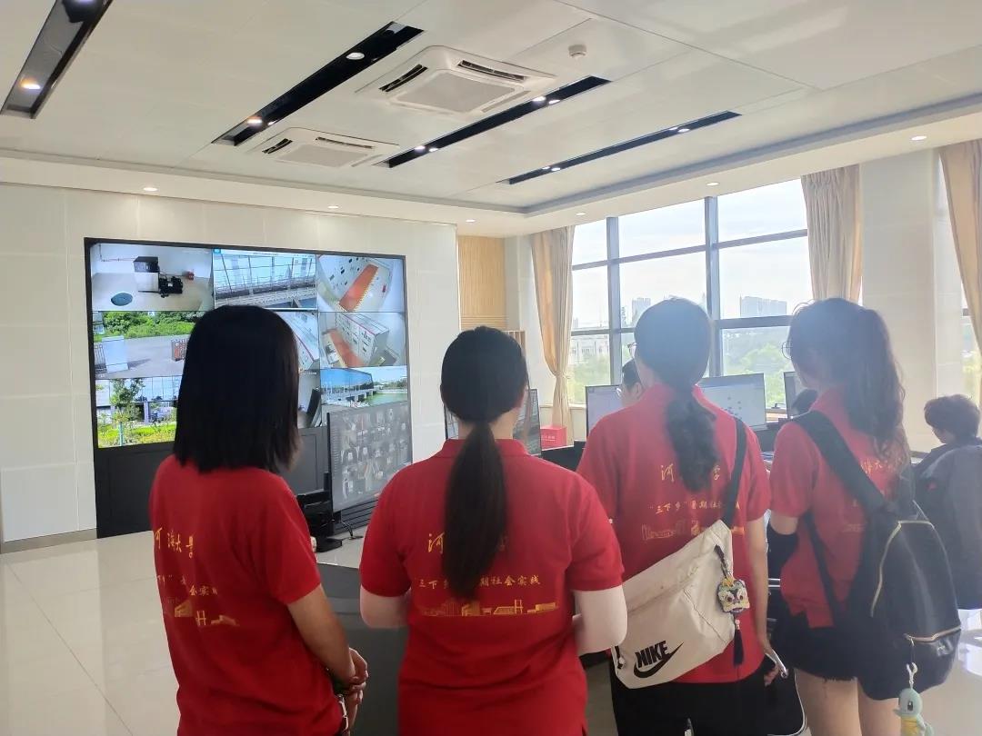之后,队员们又前往长江防汛中心管辖的海洋枢纽进行参观。在技术人员的介绍下,队员们前往中控室,亲身参与了解主汛期时技术人员的主要工作:利用云计算、数学模型和大数据分析等先进技术,调动防洪与活水联控联调智能平台实时监测各项数据,及时采取相应的措施。整个海洋泾枢纽的各项运行措施都十分的完备,真正实现了科学调度管理,全面发挥工程效益,实现智慧水务。