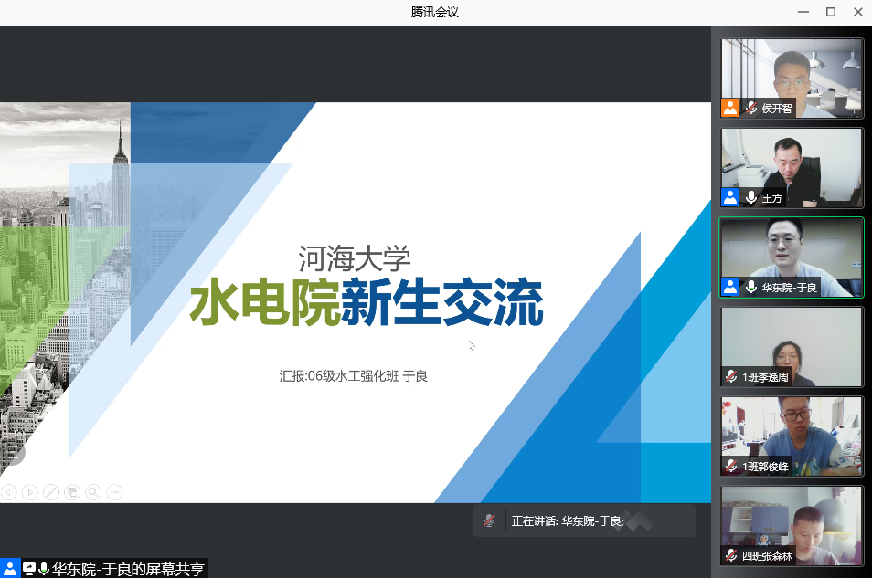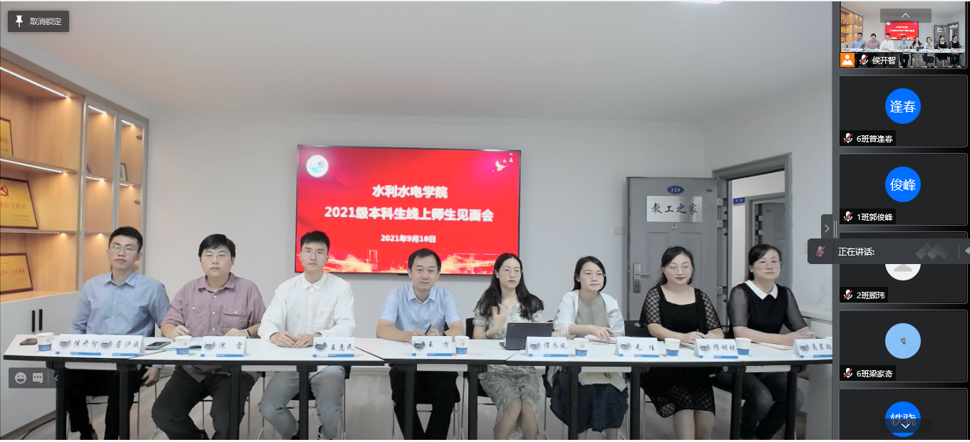 10日上午,2021级扬帆·大学生涯起航周活动之“欢迎·21级水电学子”线上师生见面会隆重举行。学院党委副书记王方出席并致辞,2021级班导师、辅导员、本科教学秘书和2021级全体本科生新同学参加会议,会议由辅导员侯开智主持。