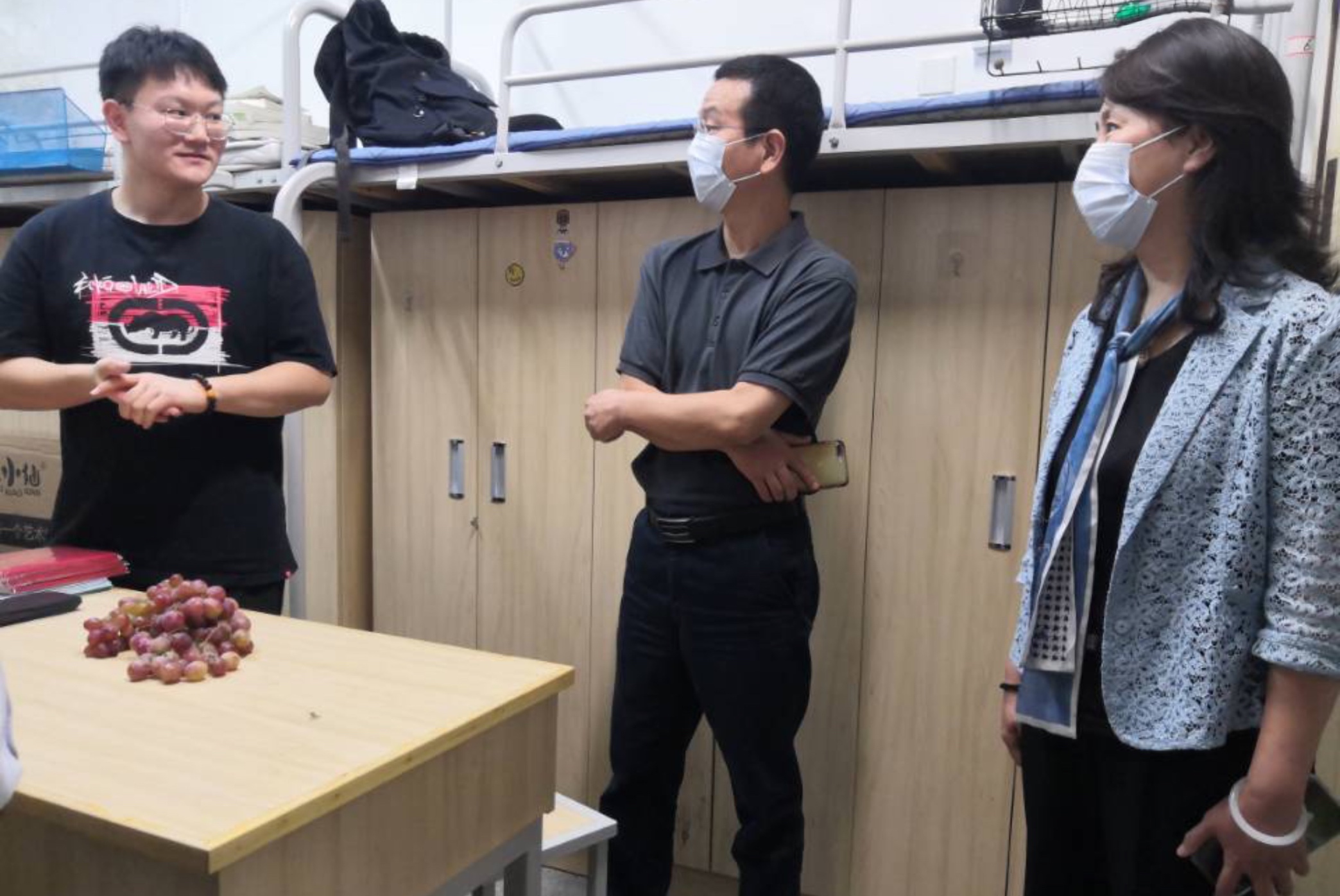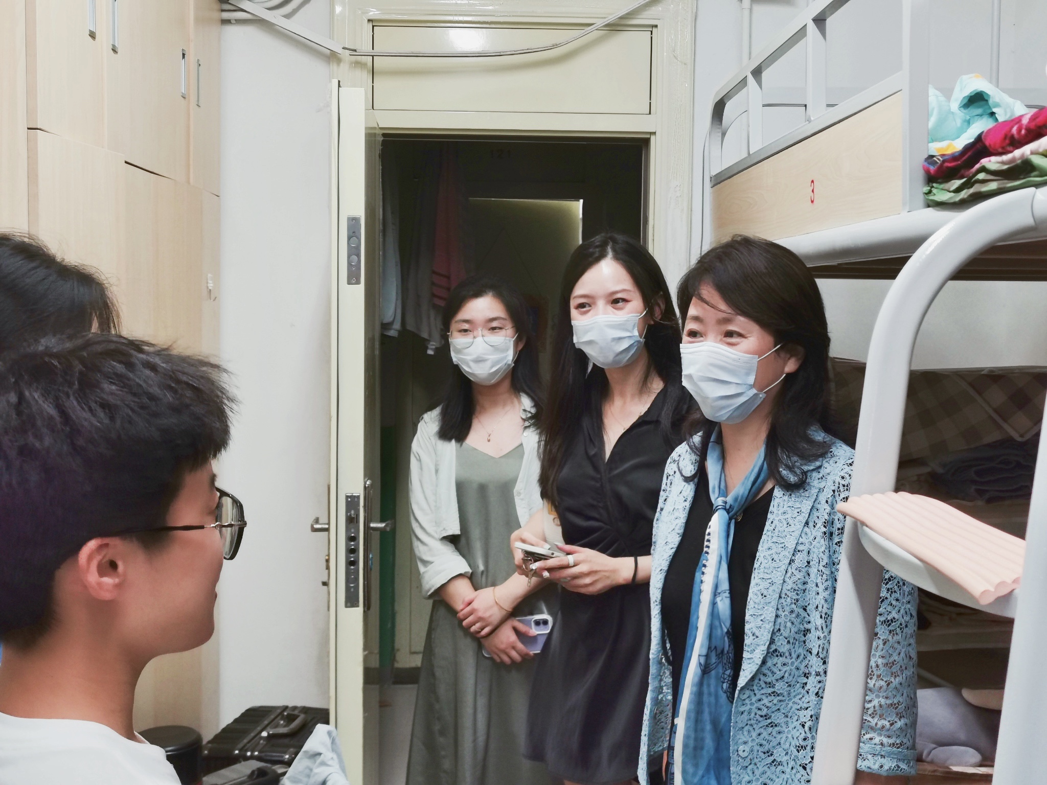 22日,老生返校当天下午党委书记娄健、院长王媛、副院长王、党委副书记王方来到西康路校区学生2舍、8新疆馆,走访慰问已返校的20182019级本科生。2018级辅导员姜帆2019级辅导员帅雨婷陪同走访。