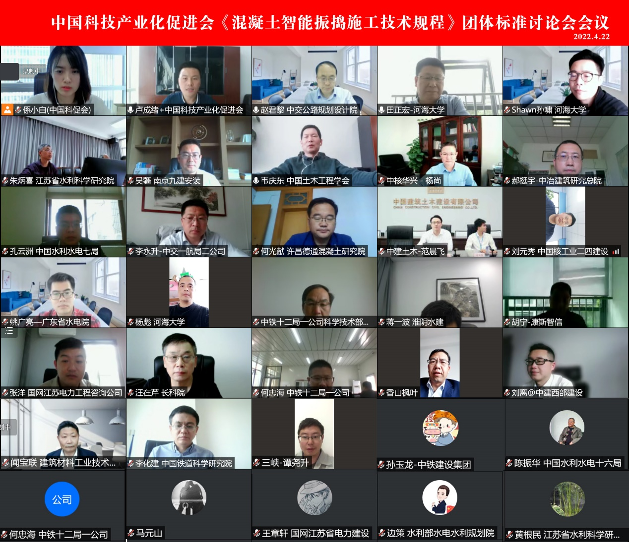 4月22日,由中国科技产业化促进会组织,色漫 与中国水利水电第七工程局有限公司联合起草的《混凝土智能振捣施工技术规程》团体标准(征求意见稿)专家研讨会在线召开。