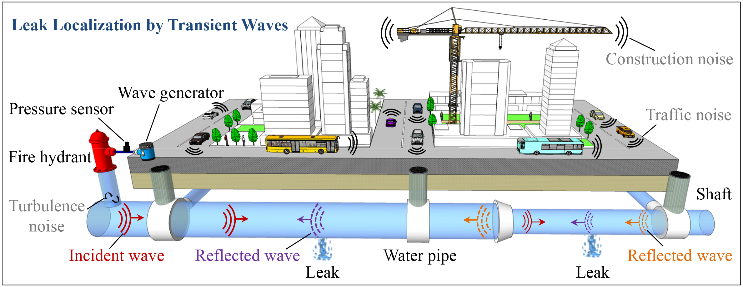 输水管道系统铺设于地下,由于年久失修,老化严重,泄漏问题层出不穷,造成了极大的资源浪费和经济损失。在此背景下,中央政府特别提出“节水优先”的水资源利用方针,《国家节水行动方案》和《“十四五”节水型社会建设规划》也多次聚焦管道“泄漏”问题。因此,深化节水型社会建设亟需攻克“输水管道泄漏定位”这一难题。