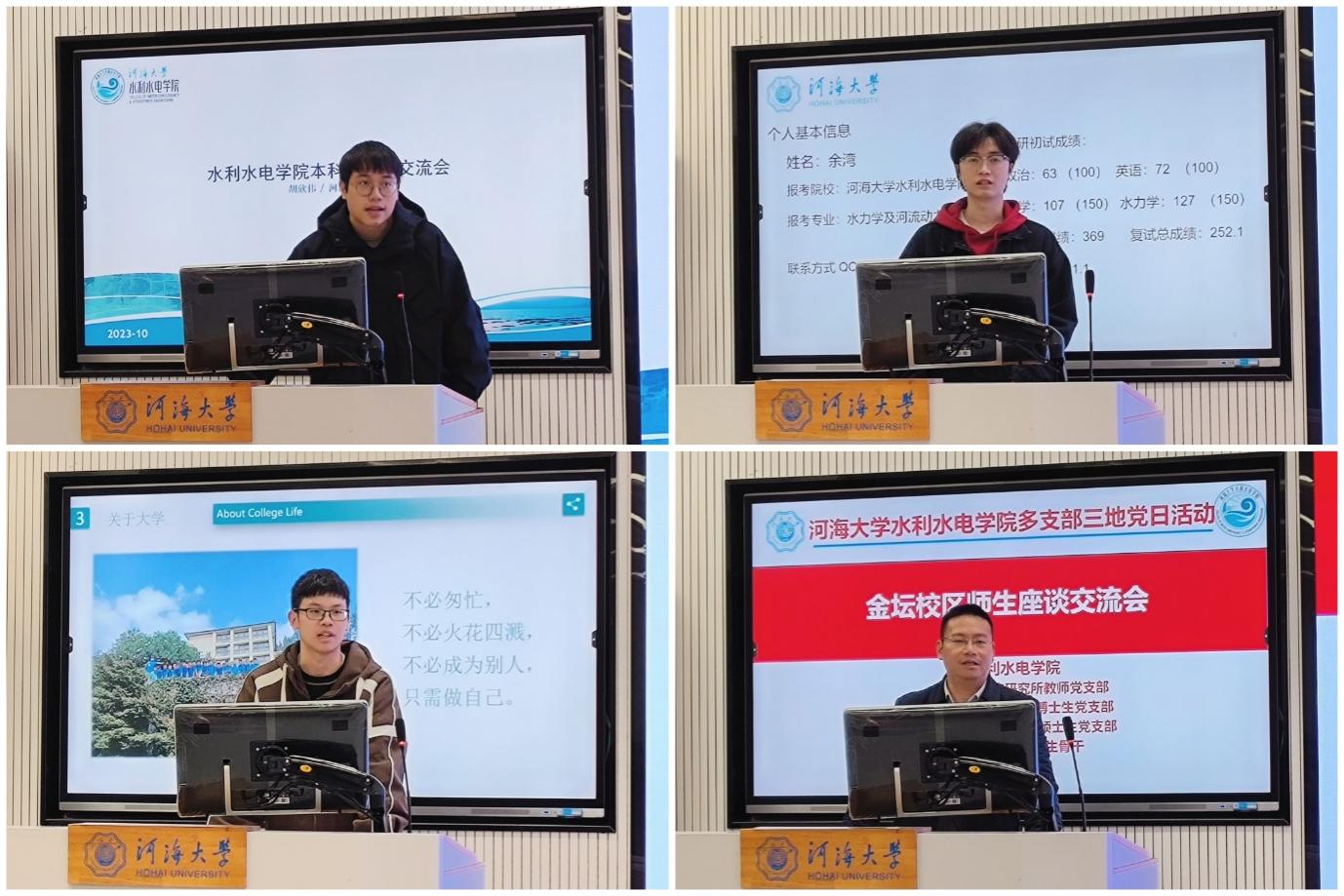 水力学及河流研究所教师党支部赴金坛校区开展多支部联合党日活动,与水力学及河流动力学博士生党支部金坛校区成员、2023级硕士生党支部、22级本科生代表座谈交流。师生座谈交流会由教师党支部书记闫静主持,分为竞赛颁奖、学科和创训介绍、保研考研经验分享、师生互动4个环节。