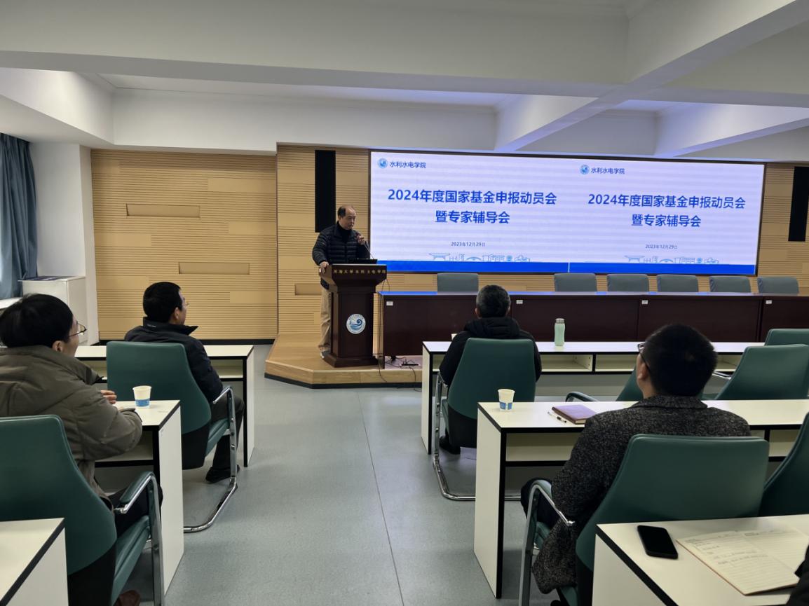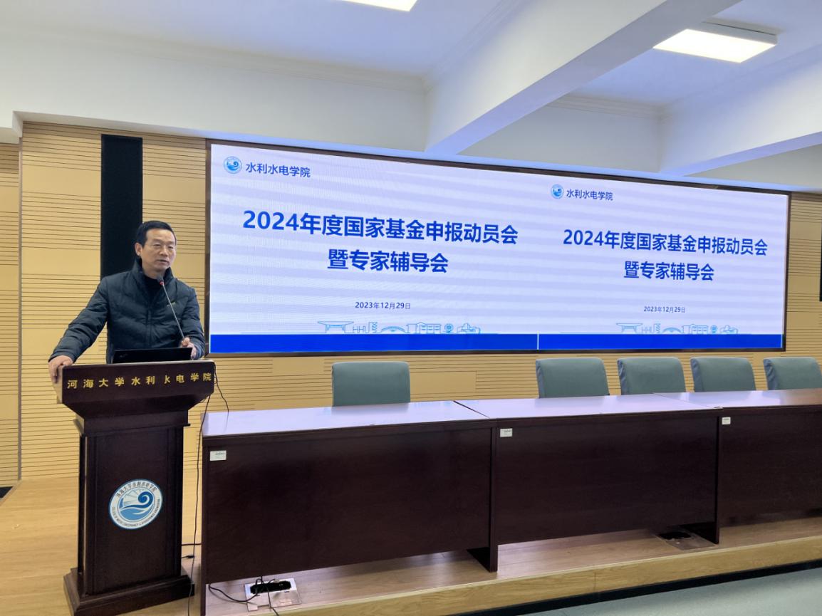 娄健书记对钟德钰教授的到来表示热烈的欢迎和感谢。娄书记指出学院老师要充分发挥自身优势,聚焦学术难点、热点兼顾实际需求,同时思考如何凝练和表达,以国家自然科学基金的申报工作为契机,促进水利学科的高质量发展。学院也会积极思考建立更加全面的保障机制和措施,开展有组织科研,加强辅导和协助,促进、推动、加速老师成长,希望老师们利用此次辅导契机,踊跃交流,在2024年度基金申报中有新突破。