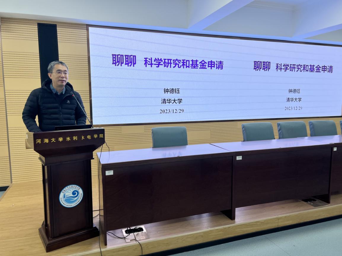 12月29日上午,学院邀请了长江学者、清华大学钟德钰教授作国家基金申报辅导报告,娄健书记出席报告会,会议由副院长冉启华主持。