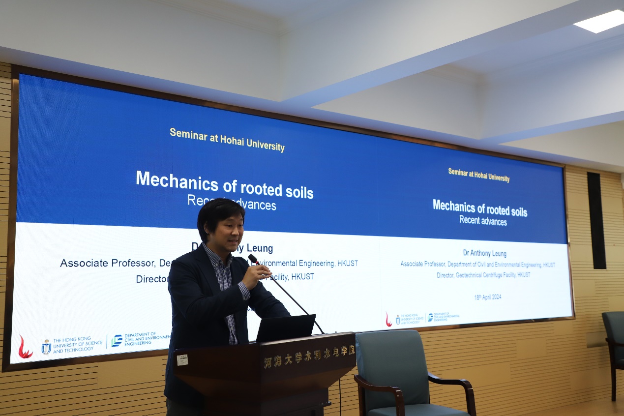 梁钧教授应邀做题目为“Mechanics of rooted soils: recent advances(根系土力学新进展)”的学术报告。报告聚焦非饱和根系土的水力-力学特性的最新科学发现及其对生态斜坡工程设计的影响,讨论人工智能(AI)在发现孔隙尺度下土壤-根系-水相互作用研究中的最新进展,相关研究是气候变化加剧背景下防灾减灾的创新实践,与色漫 智慧水利、安全科学与工程相关学科研究高度契合,受到参会老师和同学的热烈欢迎。在交流研讨环节,青年教师和研究生与梁钧教授围绕非饱和实验技术、人工智能应用等问题开展了热烈的学术互动,梁教授分享了他对相关问题的见解,并对青年学者未来的研究提出了建议。