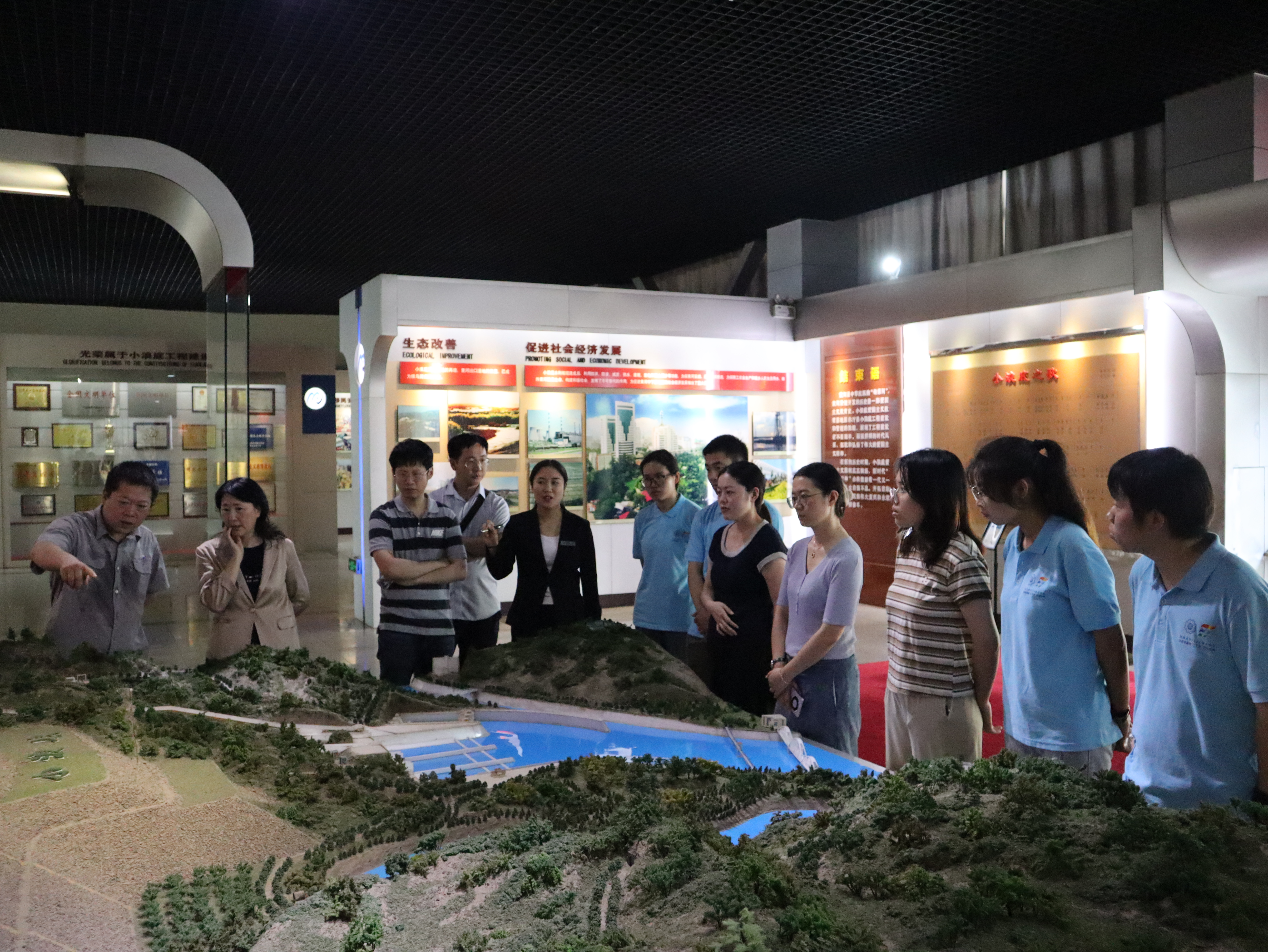 7月26日,王媛一行前往小浪底水利枢纽工程进行实地参观调研。学院一行在工作人员带领下依次参观了泄洪、排沙建筑物、斜心墙堆石坝、小浪底工程爱国主义教育基地。小浪底水利枢纽作为控制黄河水沙的关键工程,被国内外专家称为世界坝工史上最具挑战性的工程之一。调研团师生深刻感受到小浪底水利枢纽是万名中国建设者奋力开拓、砥砺实践的智慧结晶,从肩扛手抱、夯土筑埝,到水利数字化智能化发展,一代代水利人筚路蓝缕,扎实推进黄河大保护,让黄河成为造福人民的幸福河。这背后充满诸多优秀河海校友们艰苦卓绝的努力和砥砺奋进的精神,大家纷纷表示要不忘初心,为治水兴水伟大事业贡献智慧与力量。