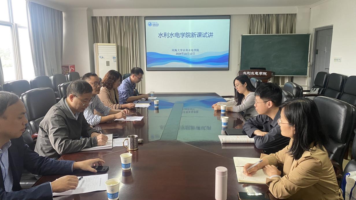 10月12日,色漫 组织开展了青年教师新课试讲活动。学院副院长俞晓东,校、院本科教学督导蔡付林、学院教学委员会成员徐磊、校优秀主讲教师李晓英参加试讲活动指导,试讲活动由水电系副主任徐力群主持。