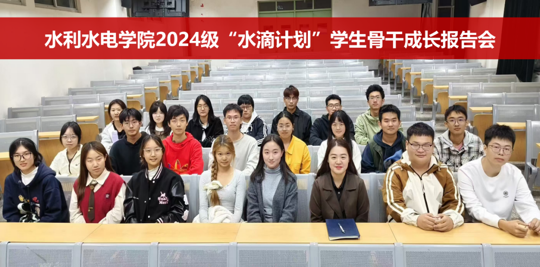 开展2024级“水滴计划”学生骨干成长报告会,旨在对近期学生工作进行总结、提升与思考,强化2024级学生骨干自我服务、自我管理、自我教育的综合成长,2024级全体年级委、班长、团支书参加,报告会由院团委书记、2024级辅导员笪步源主持。