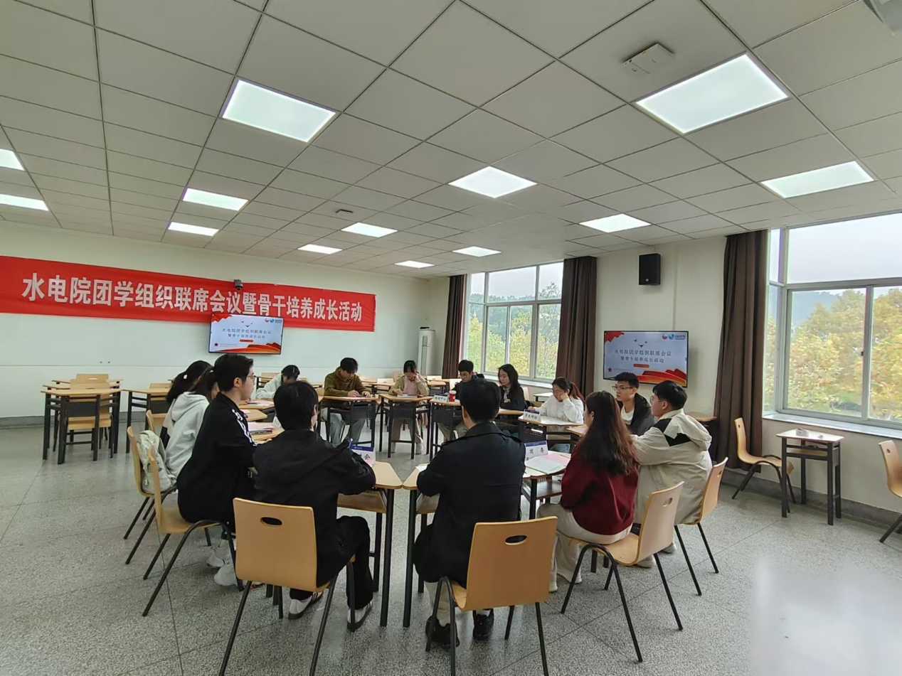 为进一步提高色漫 团学组织凝聚力,加强各组织主席团的协作交流,提升主席团成员的工作能力与交流沟通能力,2024年11月13日,色漫 举办“水电优才-先锋骨干领潮计划”团学组织联席会议暨骨干培养成长活动。院团委、研究生会、学生会、青年志愿者协会、学生科协、传媒中心全体主席团成员参加,会议由院团委书记笪步源主持。