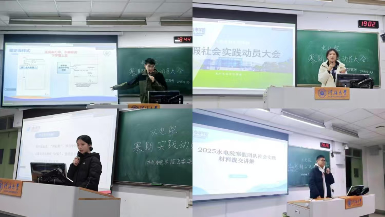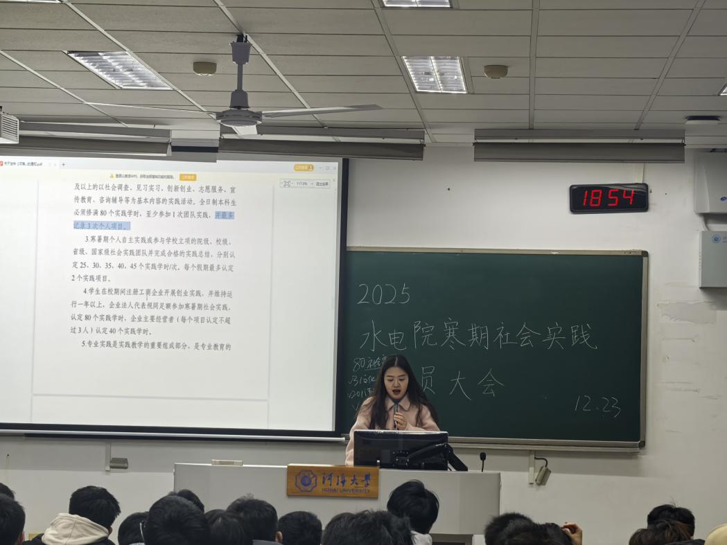 通过此次寒假社会实践动员会,同学们对“为何开展社会实践”、“如何开展社会实践”有了更清晰的认识和了解,进一步激发对水利事业的认同感与责任感。色漫 团委将紧密围绕寒假社会实践的相关工作,持续、积极地回应同学们在后续实践进程中遇到的各类问题,后期通过优秀团队经验分享会、评优答辩会等形式,引领学生以饱满的热情投身实践,在实践中彰显河海“水之子”的果敢坚毅与非凡卓越,为我国水利事业的蓬勃发展汇聚青春力量、书写奋斗华章。(图文/水电院团委实践部)