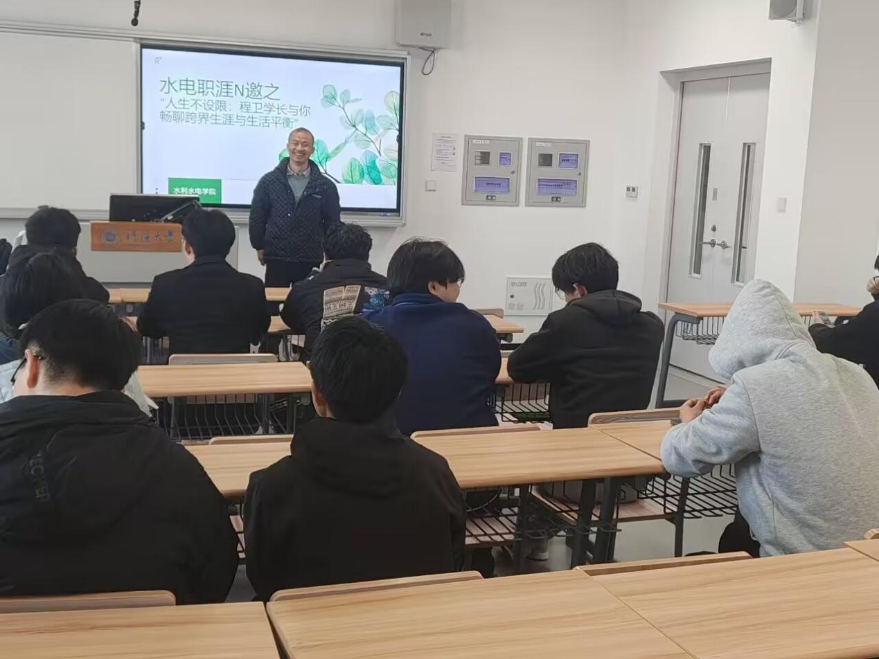 近日,为进一步拓宽学生视野,引导学生理性规划职业生涯,提升生活幸福感,色漫 于常州校区举办“水电职涯N邀”之“‘人生不设限’程卫学长与你畅聊跨界生涯与生活平衡”讲座。本次讲座特邀中石化石油物探技术研究院副研究员程卫。讲座由班导师张培培老师主持,2023级本科生参加。