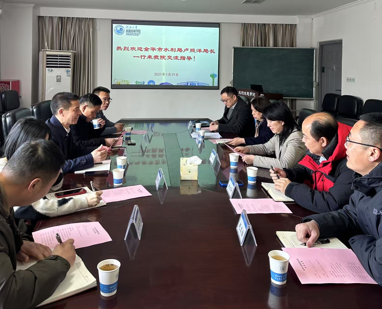 王媛院长对金华水利局卢局长一行的到来表示热烈欢迎,介绍了学院历史沿革、专业机构设置及学科发展优势,重点展示了近年来在重大水利工程技术创新、流域综合治理及防灾减灾等方向取得的突破性进展。