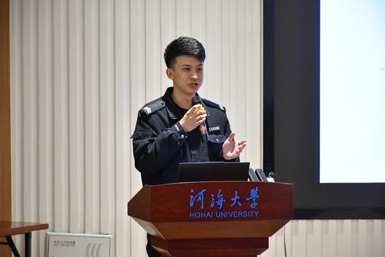 侦查民警陈警官则聚焦"数字时代的反诈攻防战",通过数据统计揭开电信诈骗黑色产业链。他结合教育部最新统计数据显示,深度解析了针对高校的三大变异型诈骗:利用智慧校园系统漏洞的"课程退费"诈骗、伪装学术会议的"资料窃取"骗局,以及针对科研团队的"专利钓鱼"攻击。针对研究生群体,他特别提醒注意"学术诈骗"陷阱,包括虚假期刊投稿、数据买卖等违法行为。他倡导师生共同参与"全民反诈"行动,呼吁“大家要像保护实验数据一样守护个人信息”,这一形象且生动的比喻,立即引发大家的思考与共鸣。