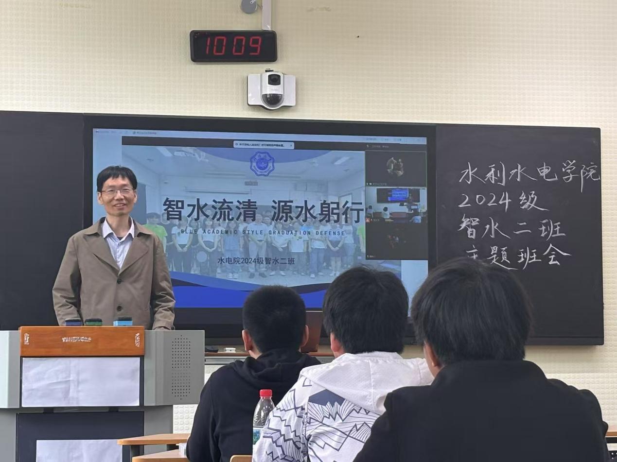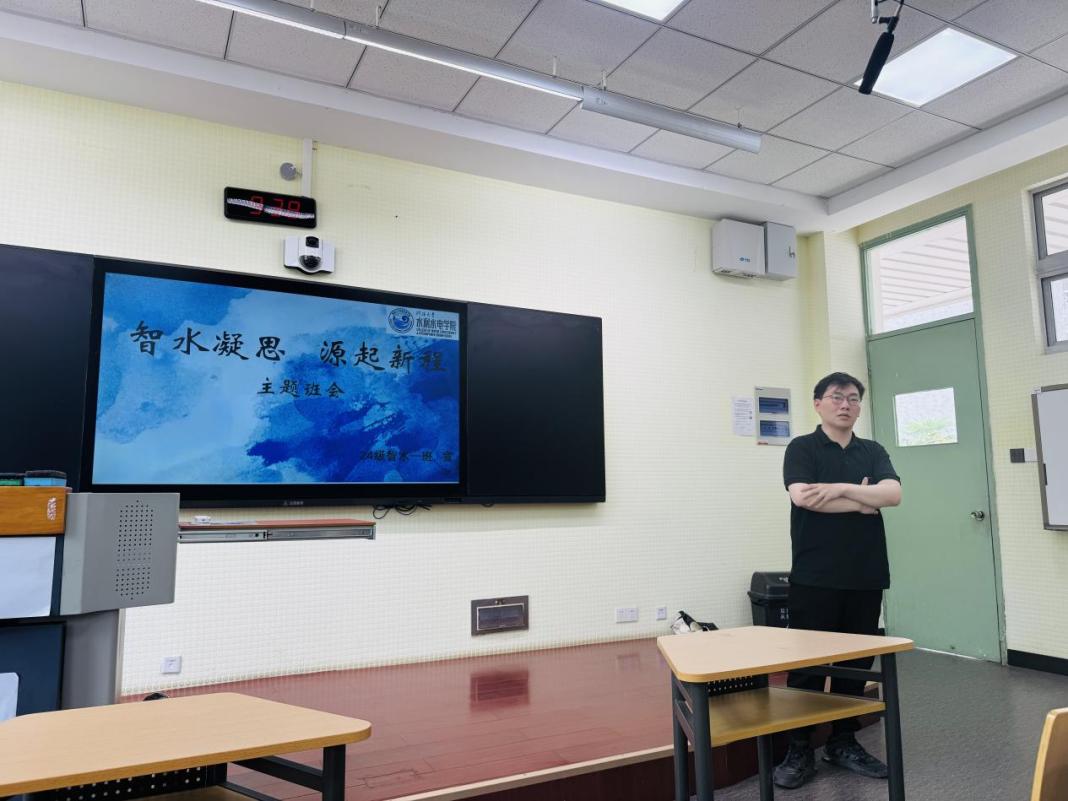 2024级智水二班班导师朱延涛结合成绩数据对班级同学在学风建设、科研竞赛等方面提出更高要求。希望班级同学针对性补强短板,并为同学提供个性化升学与就业指导。