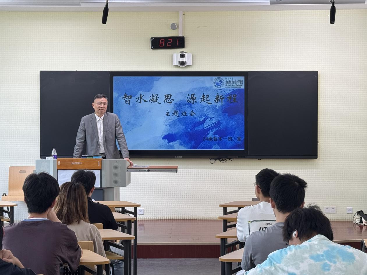 为深化专业认知、凝聚班级力量,色漫 2024级智水一班与智水二班于色漫 江宁校区开展主题班会。淮河水利委员会水文局原局长钱名开、色漫 党委宣传部部长魏有兴出席并讲话,智慧水利系主任、智水二班班导师许栋、智水一班班导师朱延涛、辅导员笪步源及班级全体学生参与,班会通过经验分享与互动交流,共话成长方向。