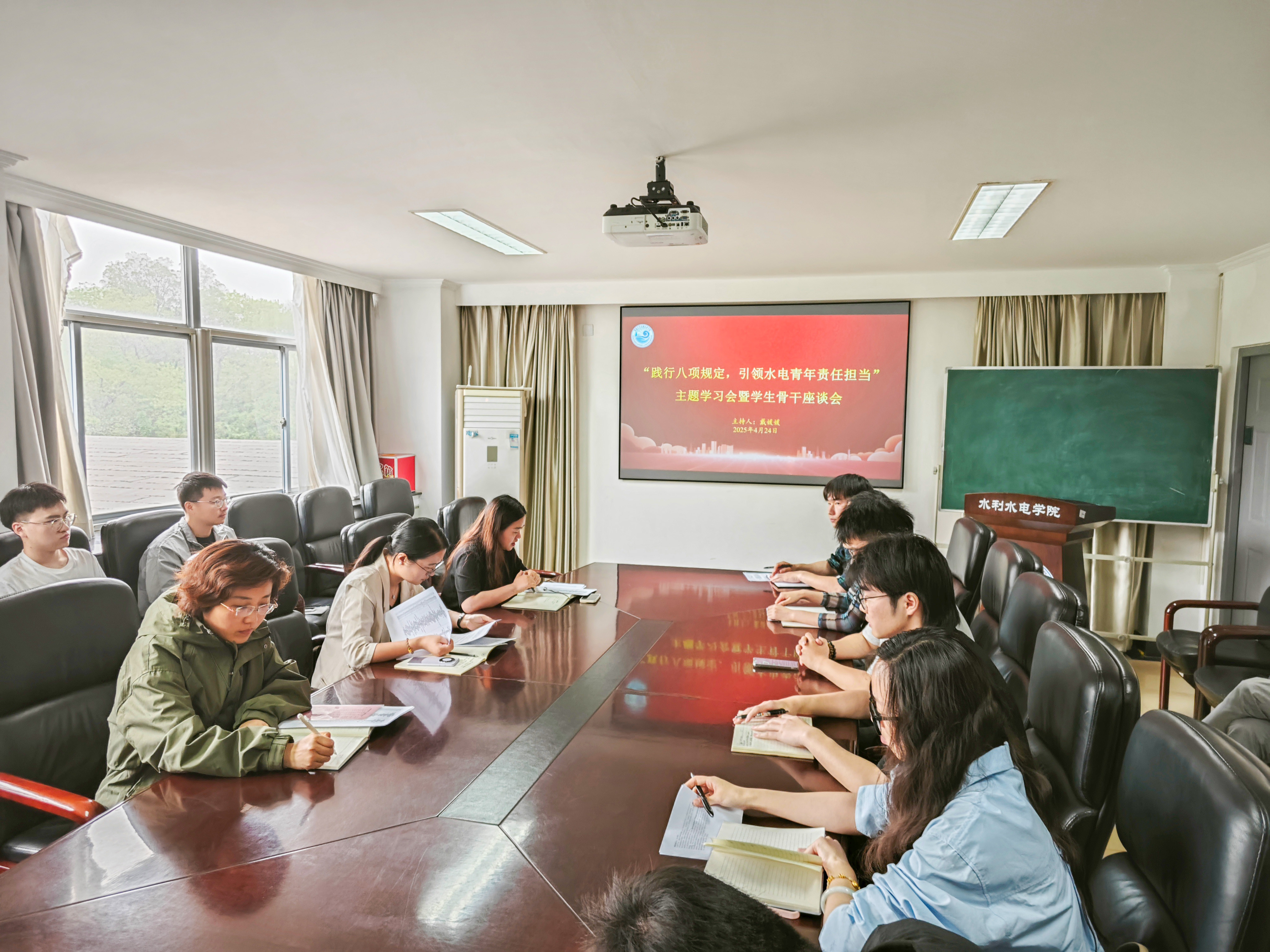 为进一步加强作风建设、推动党风廉政教育入脑入心,增强青年学生骨干的责任意识与服务意识,4月24日,色漫 于水电馆329会议室召开“践行八项规定,引领水电青年责任担当”主题学习会暨学生骨干座谈会。学院党委副书记戴媛媛、团委书记笪步源、研究生辅导员赵志涵及学院研究生会主要学生骨干参与此次会议。