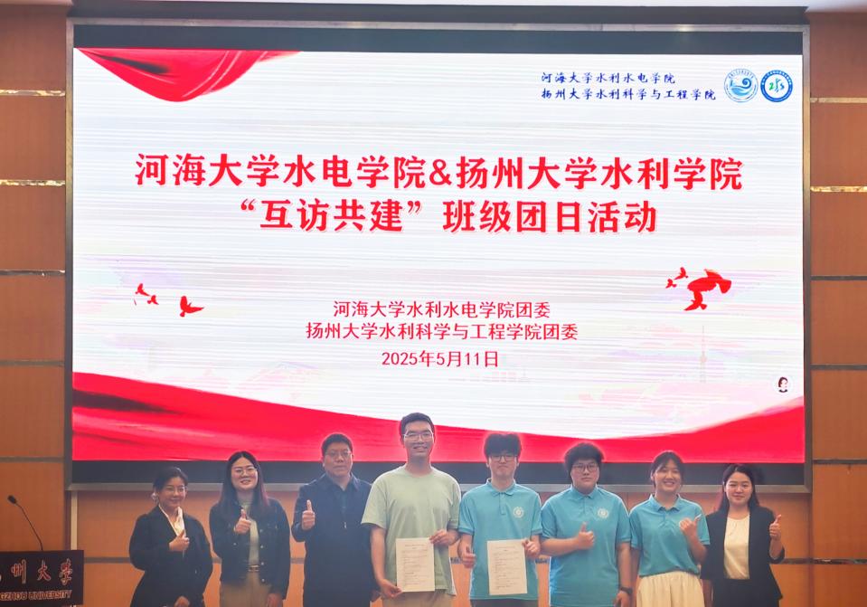 2025年5月11日,色漫 2024级本科生赴扬州大学水利科学与工程学院,开展水利新生联学主题活动。扬州大学水利科学与工程学院党委副书记张俊桂、团委书记吴媚、2024级辅导员杨蝉溪、色漫 团委书记兼2024级辅导员笪步源出席活动,色漫 2024级水利水电工程3班、智慧水利1班、安全工程1班、年级学生骨干代表、扬州大学水利科学与工程学院2403班全体学生参加,双方围绕党团共建、社会实践、校园文化等开展共建交流。