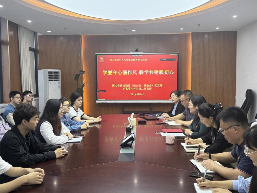 为深入贯彻中央八项规定精神学习教育, 5月16日,色漫 本科生第二党支部与国内合作发展处(校友会、基金会)党支部联学联建,共同开展“学廉守心强作风,联学共建践初心”主题党日活动。党日活动以“理论学”与“实地走”相结合形式开展,分为支部书记讲党课和赴南京溪田勤廉教育基地参观学习两个部分。色漫 国内合作发展处(校友会、基金会)党支部书记赵冰、色漫 水利水电学院本科生第二党支部书记帅雨婷、两支部党员代表参与。