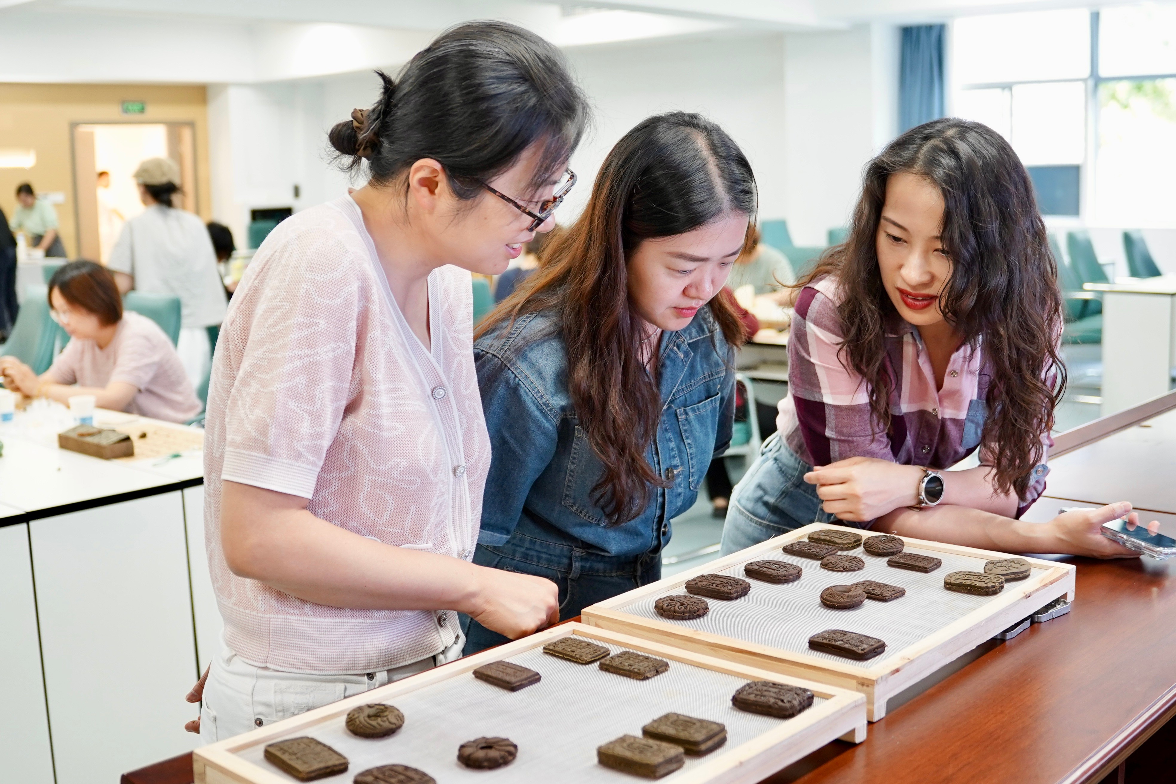 活动伊始,资深香道老师从容展演传统制香技艺。案几之上,香粉细腻,工具精巧。老师巧手翻飞,称量、配伍、调匀、成型,动作行云流水,气韵沉静专注。顷刻间,一枚枚凝聚自然精华的香牌雏形初现,馥郁清芬随之在空气中悄然弥漫开来,令在场教师无不屏息凝神,零距离感受这份流转千年的匠心与雅意。