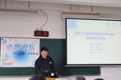 10月28日,色漫 第十四届“学海争锋”学术年会暨色漫 第十六届“达峰论坛”活动在西康路校区成功举办。本届论坛以“百十求索,水至峰成”为主题,设置水工结构工程会场、水力学与智水安工交叉会场、水利水电工程会场。活动邀请色漫 顾圣平、陈守伦、黄显峰、邵晨飞、朱延涛、徐津、刘琳等教师担任评委嘉宾,共有32名研究生出席论坛参与汇报,逾200名观众现场倾听。