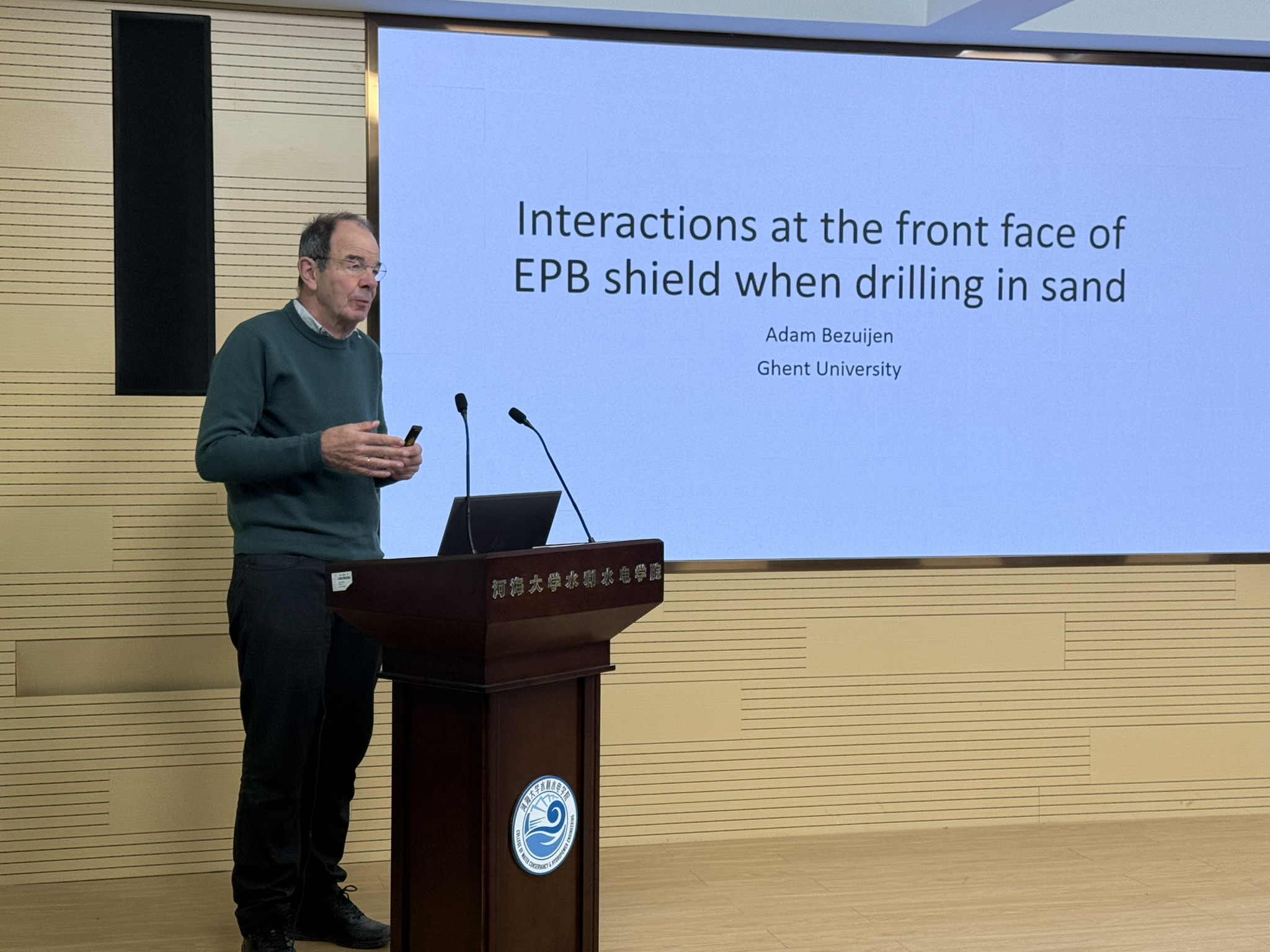2025年11月19日上午,学院在水电馆301会议室成功举办学术研讨会。应王媛教授邀请,比利时根特大学Adam Bezuijen教授访问色漫 ,并作了题为“砂土地层盾构掘进掌子面相互作用机制”的学术报告。本次报告旨在深化对复杂砂土地层中盾构掘进机理的认识,揭示“土体-盾构-地下水-泡沫”相互作用机制,为盾构掌子面精细化控制及施工安全风险防控提供科学依据和技术支撑。