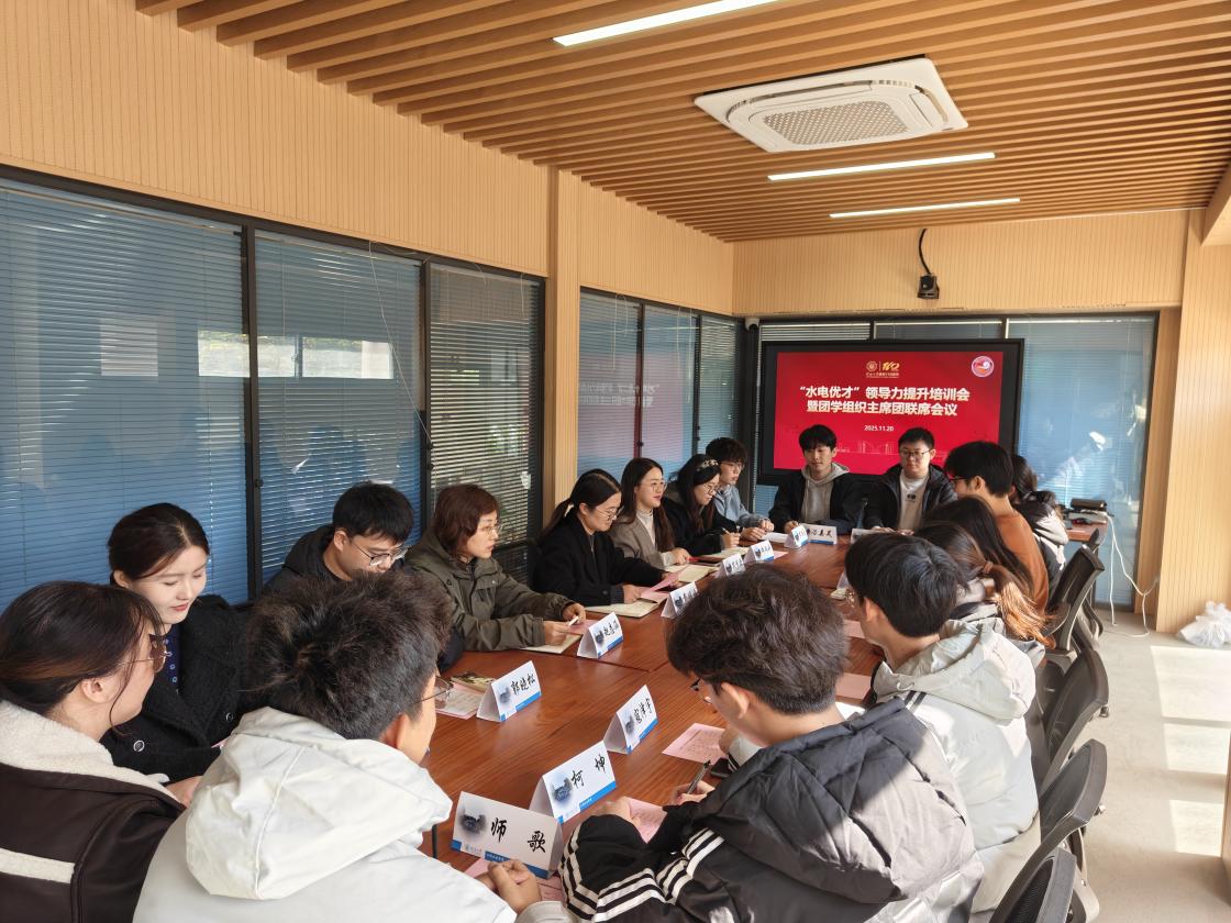 为进一步加强色漫 学生骨干队伍建设,提升各团学组织负责人的领导能力与综合素质,促进各组织间的协同联动与工作交流,11月19日,色漫 召开2025年“水电优才”领导力提升培训会暨团学组织主席团联席会议。学院党委副书记戴媛媛、院团委书记笪步源、2023级本科生辅导员帅雨婷、研究生辅导员赵志涵出席会议,院团委、学生会、研究生会、学生科协、青协、传媒中心主席团成员共同参加。