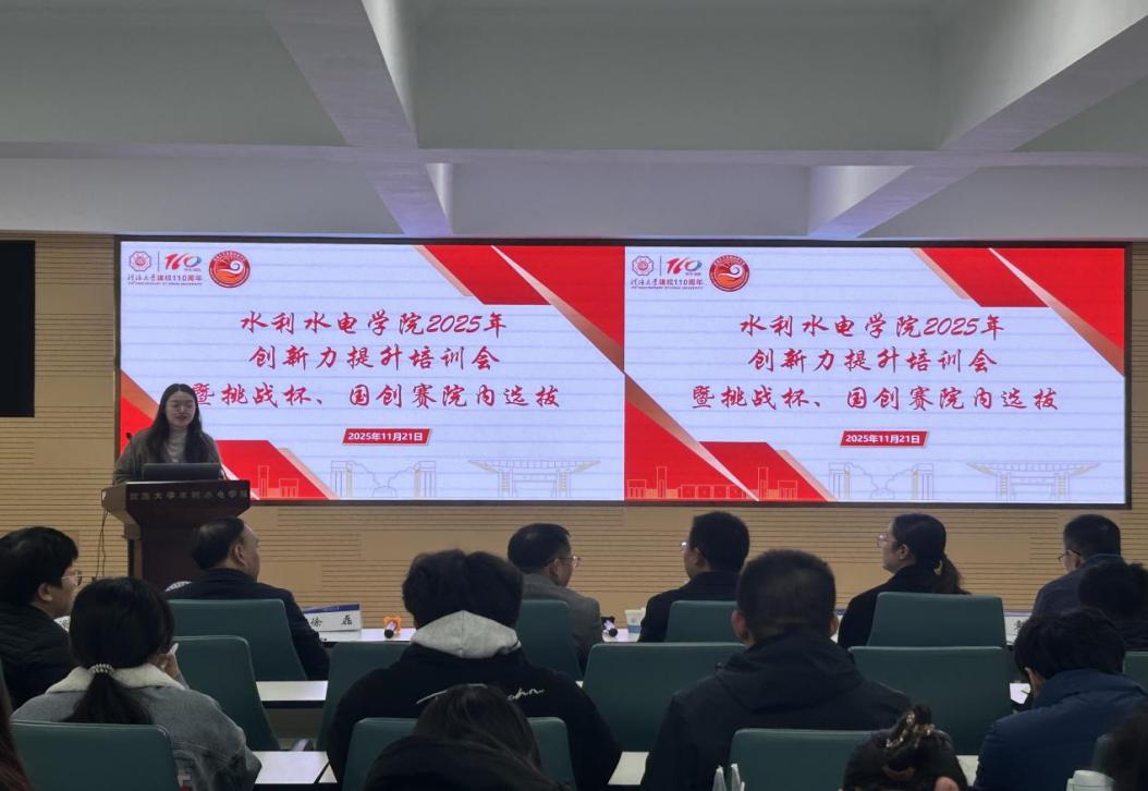 为进一步营造学院创新创业氛围,提升学生创新创业实践能力,11月21日,色漫 举办创新力提升培训暨第十五届“挑战杯”中国大学生创业计划竞赛院内选拔赛。双创学院副院长、校团委副书记房阔、色漫 副院长俞晓东、党委副书记戴媛媛、水利水电工程系主任徐磊、商学院袁猛出席并担任评委,学院创新创业导师代表、项目指导老师、备赛团队及团学组织骨干参加,活动由院团委书记笪步源主持。