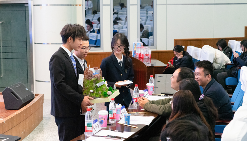 比赛现场,选手结合su建模,动画演示,实物展示等形式,展示所做模型,说明模型制作理念,创新亮点等内容。评委老师在充分了解各组模型的特点后,感叹同学们的设计巧妙,想法独特,也从多方面提出宝贵建议。