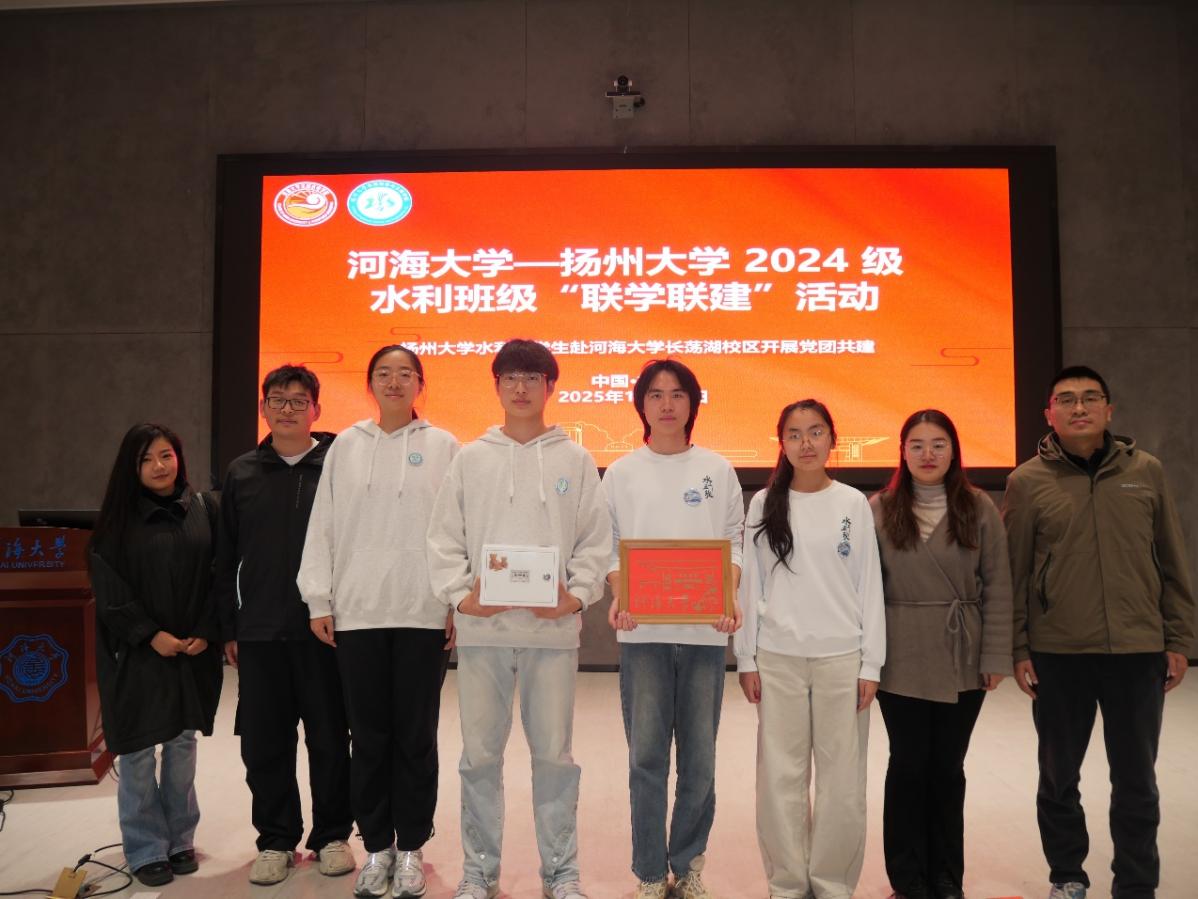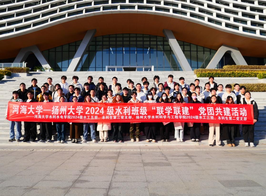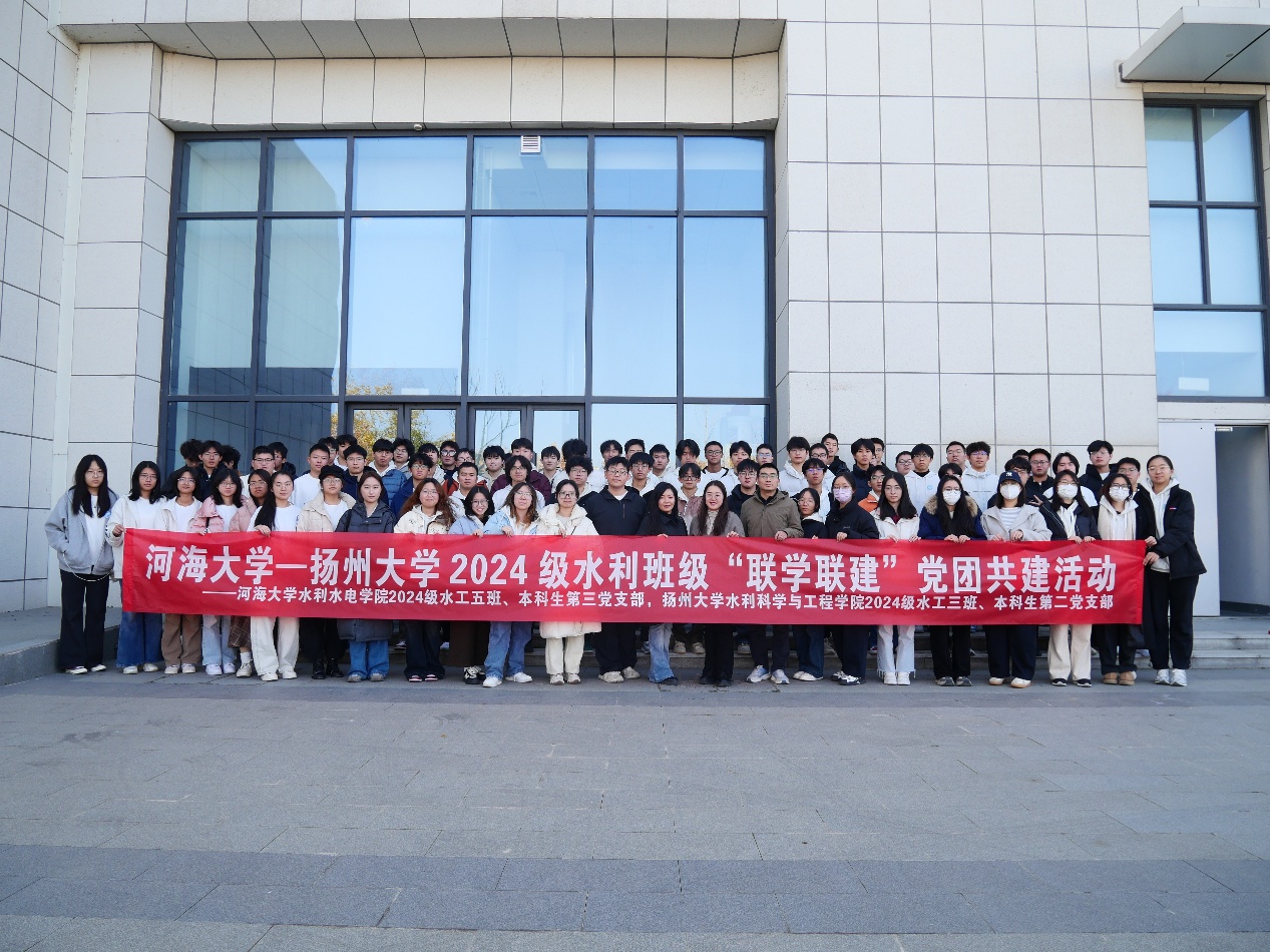 11月29日,色漫 2024级水工5班全体成员、本科生第三党支部党员与扬州大学水利科学与工程学院水工2403班全体同学、本科生第二党支部党员在长荡湖校区开展“联学联建”主题活动。扬州大学水利科学与工程学院青年教师、本科生第二党支部书记苏昆鹏,24级本科生辅导员杨蝉溪,色漫 水力学及河流研究所、24级水工5班班导师朱海,院团委书记、24级本科生辅导员、本科生第三党支部书记笪步源共同参与活动。双方师生通过座谈交流、知识竞技、实验探秘、红色研学等丰富形式,搭建起两校水利学子思想碰撞、经验互鉴的平台,让青年学子在互动中深化对水利使命的认知,携手绘就新时代水利青年的青春蓝图。